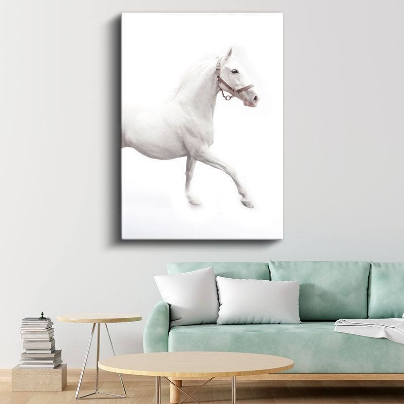 Saf Beyaz At - Zarafet ve Hareket Kanvas Tablo