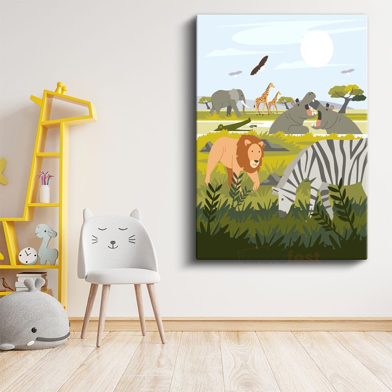 Safari Manzarası - Afrika Hayvanları Macerası Kanvas Tablo