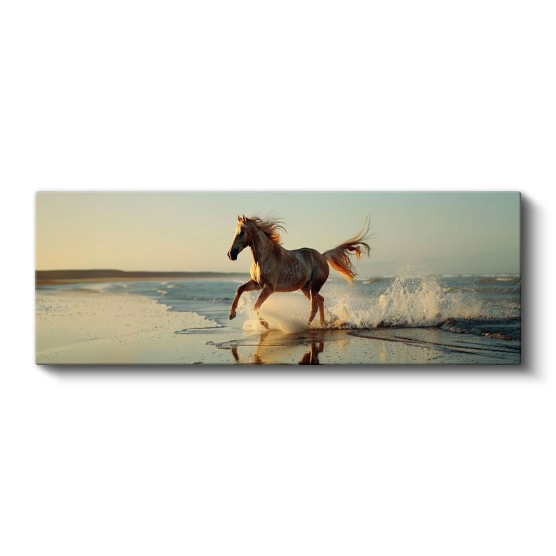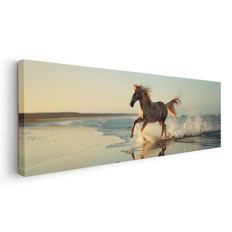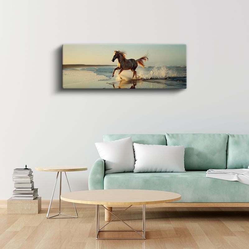 Sahil Koşusu - Gün Batımında Özgür At Kanvas Tablo