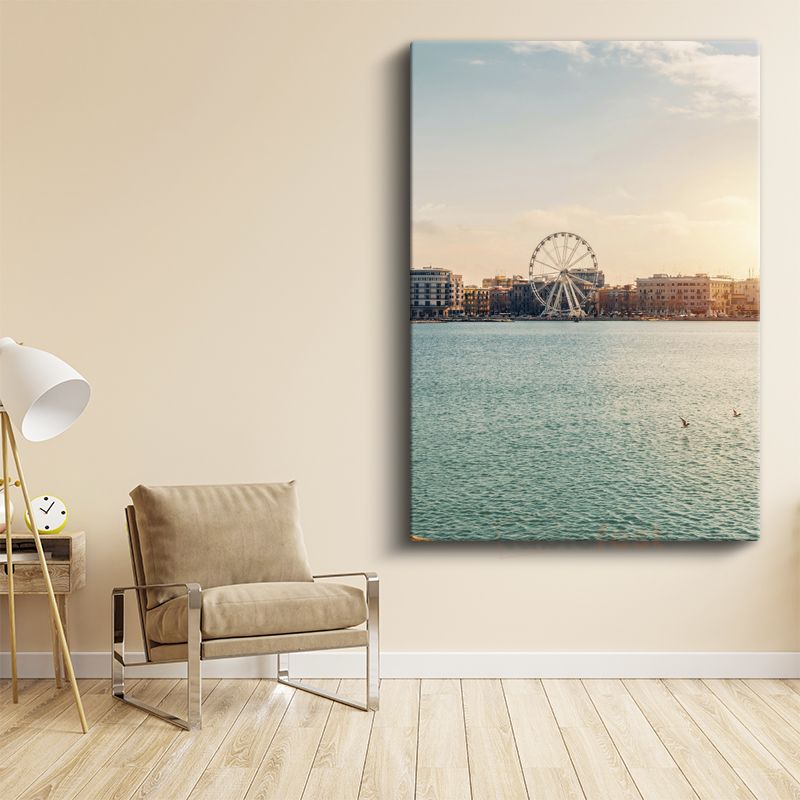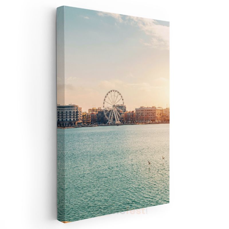 Sahil Şehri - Günbatımında Dönme Dolap Manzarası Kanvas Tablo