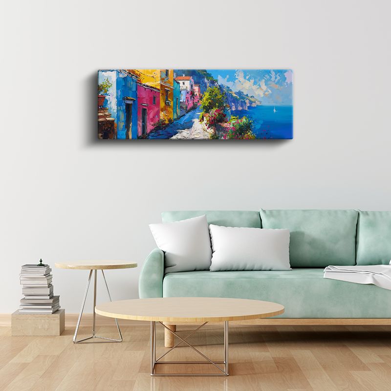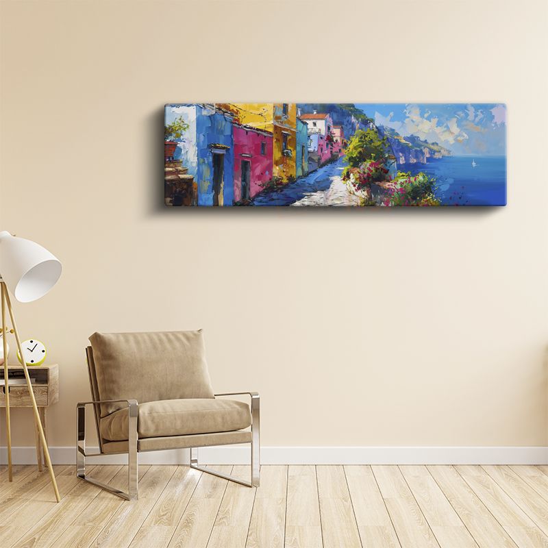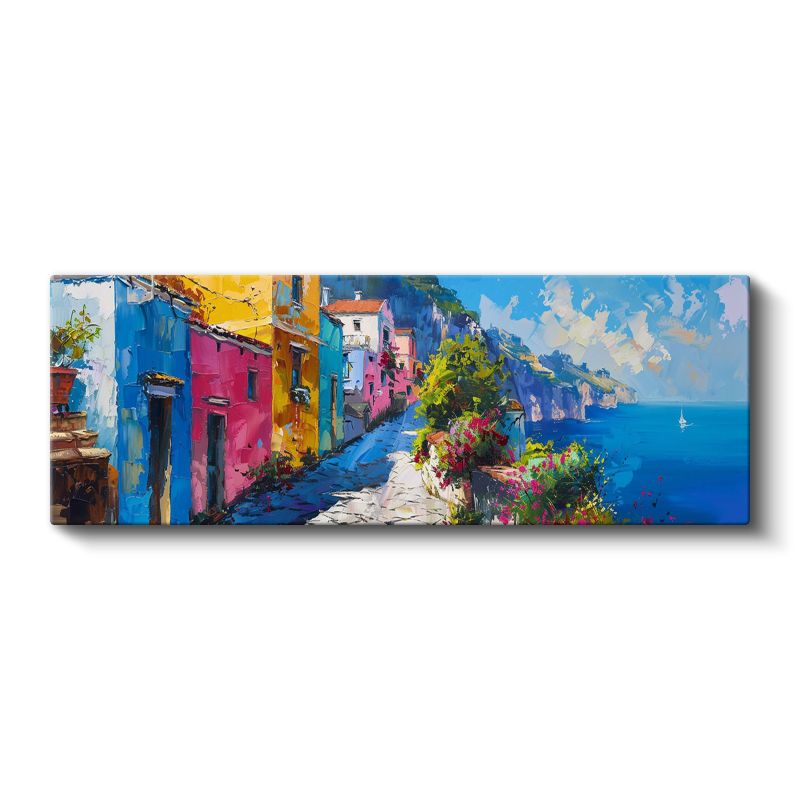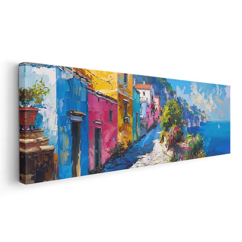 Sahil Sokağı - Çiçekli Renkli Evler Kanvas Tablo