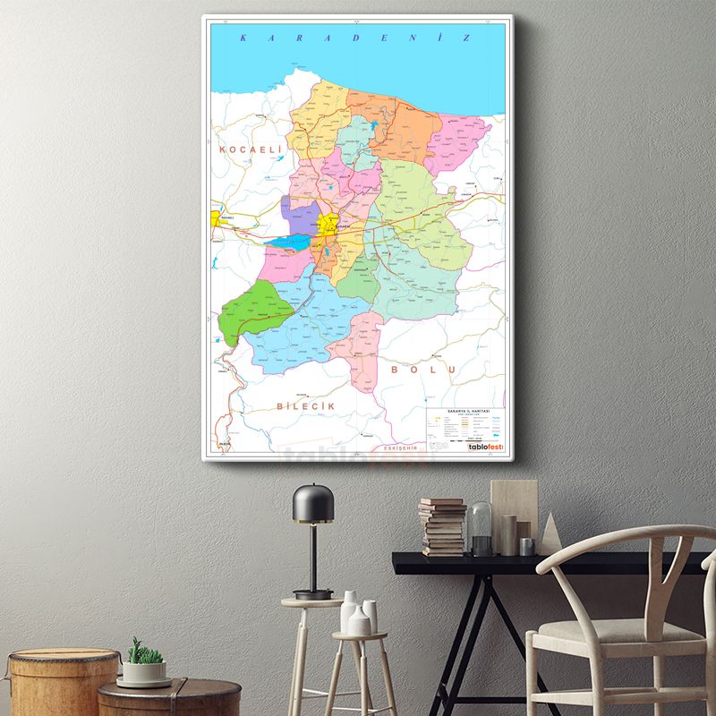 Sakarya - İl Haritası Kanvas Tablo