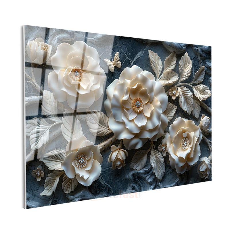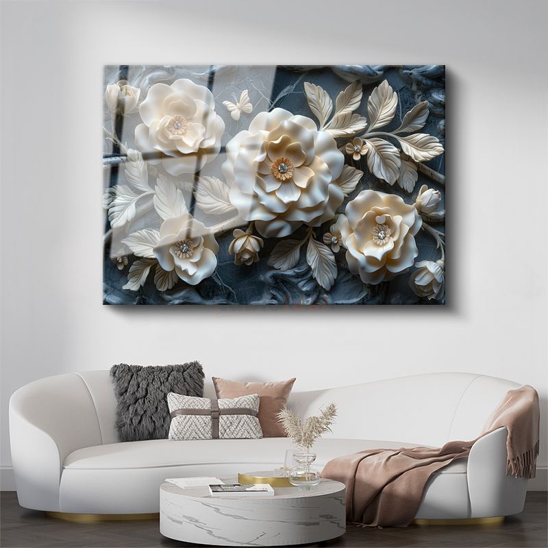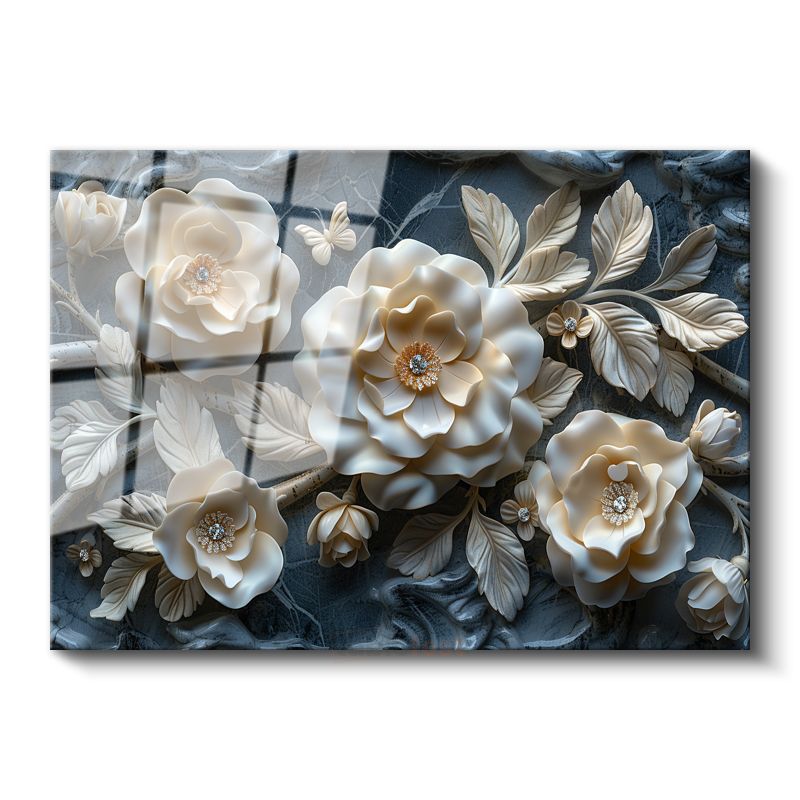 Şakayık Buketi - Vintage Tarzı Romantik Çiçek Portresi Cam Tablo