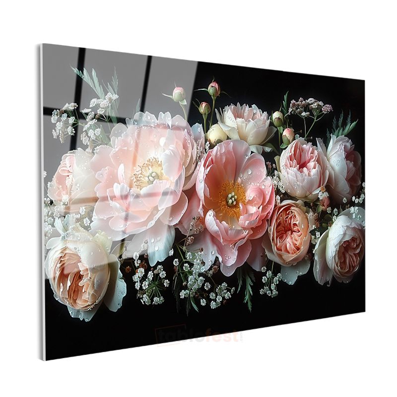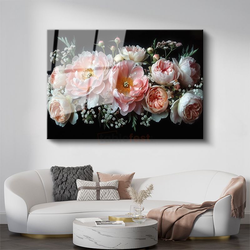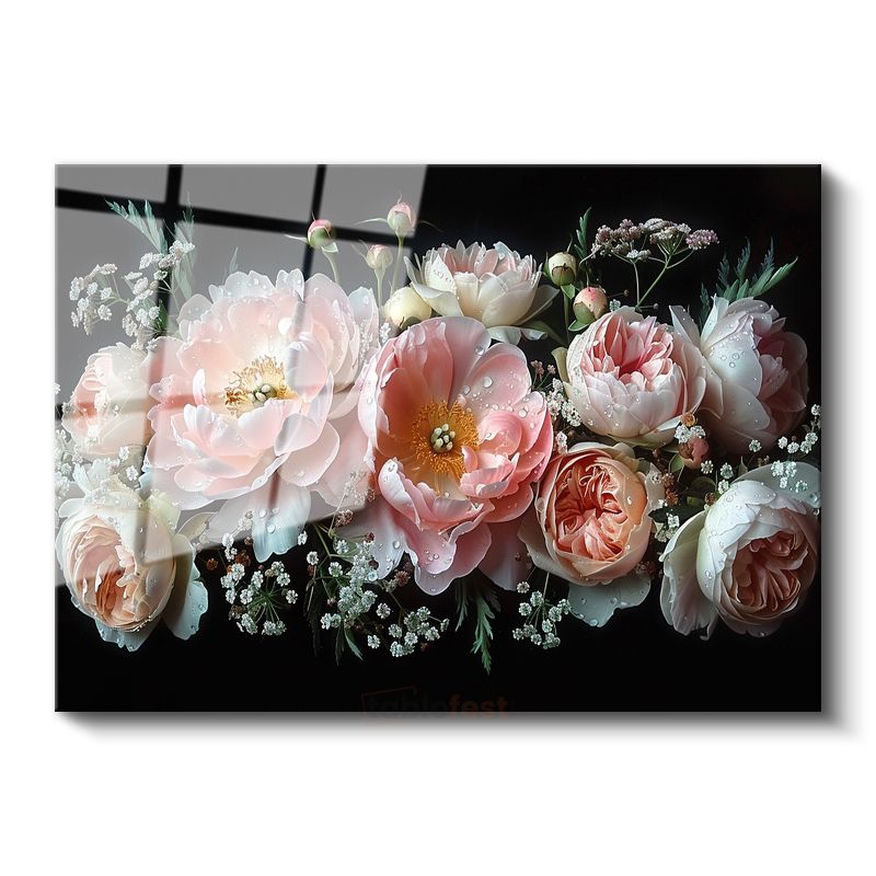 Şakayık Buketi - Zarif Pembe Tonlarda Çiçek Kompozisyonu Cam Tablo