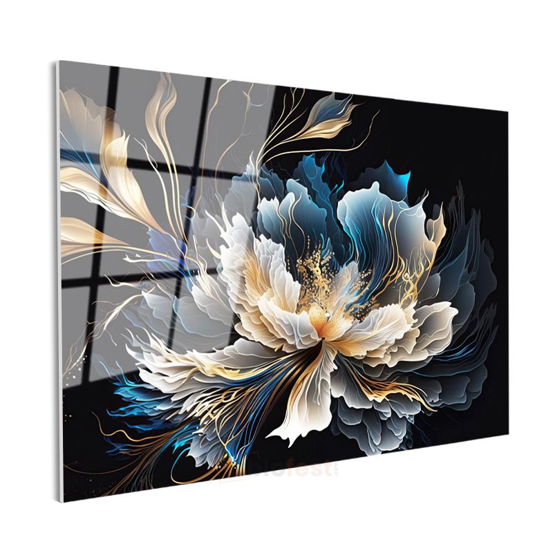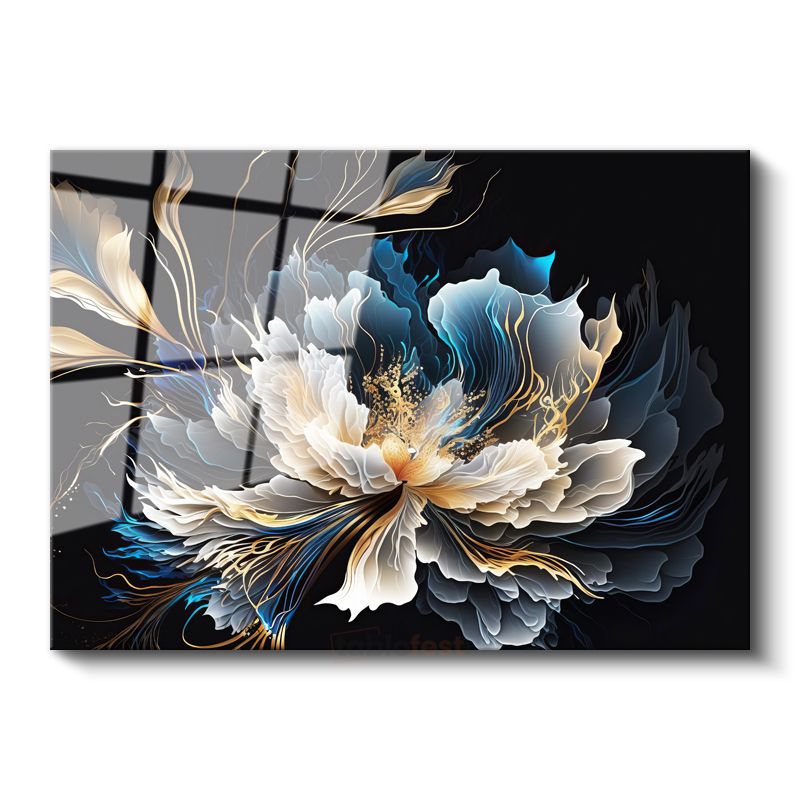 Şakayık Çiçekleri - Altın Işıltılı Pembe Gül Buketleri Cam Tablo