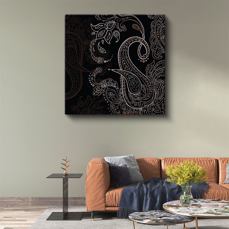 Şal Deseni - Zarif Paisley Motifli Soyut Kompozisyon Kanvas Tablo