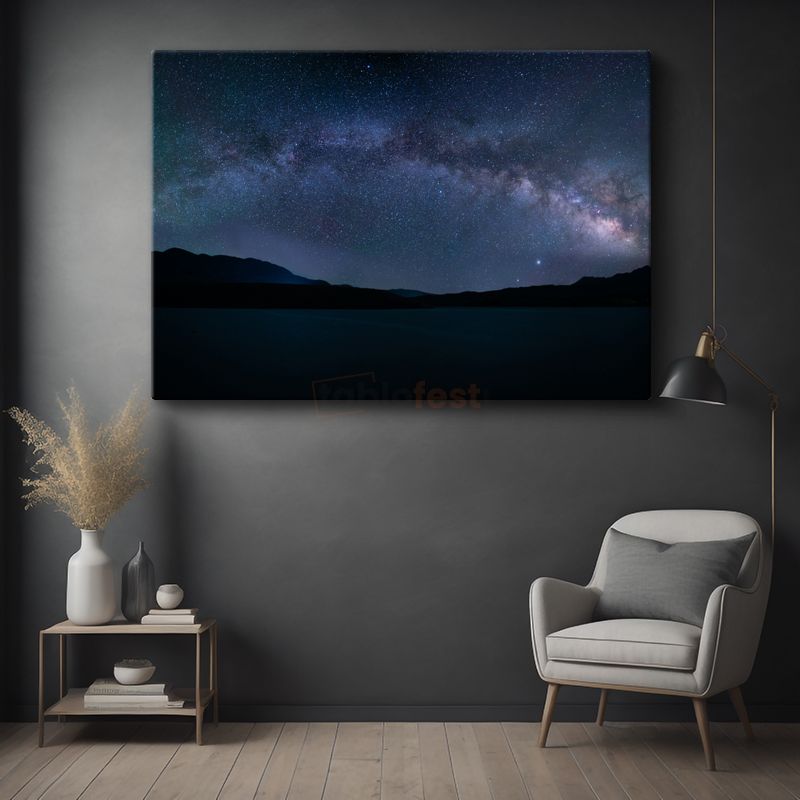 Samanyolu - Dağlar Üzerinde Yıldızlı Gece Gökyüzü Kanvas Tablo