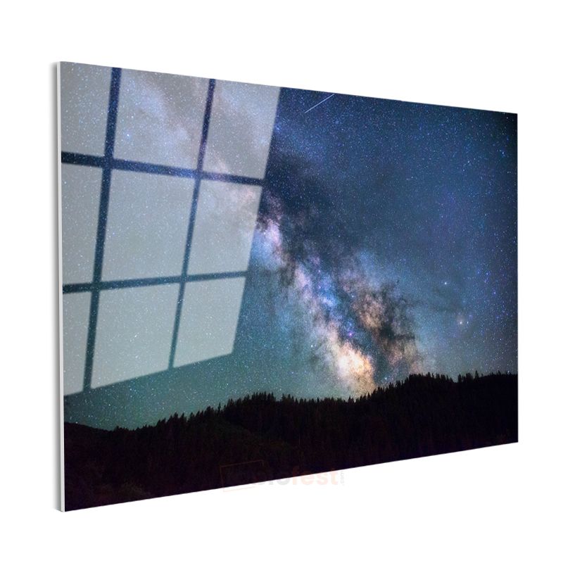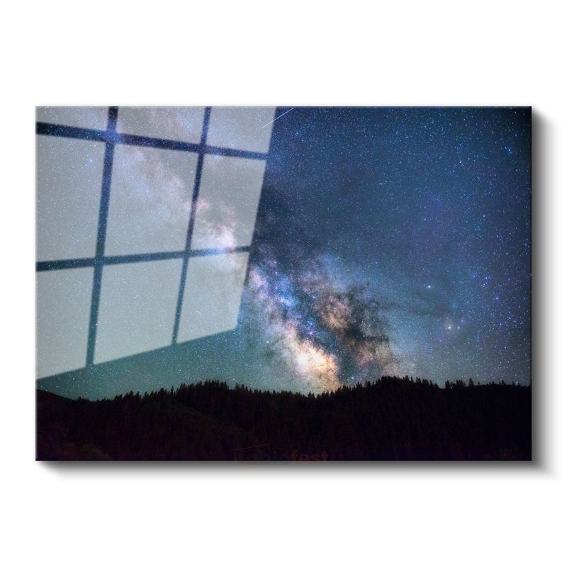Samanyolu - Gece Ormanı Üzerinde Yıldız Patlaması Cam Tablo