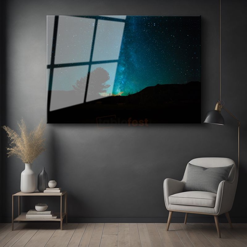 Samanyolu - Gecenin Derinliklerinde Yıldızların Dansı Cam Tablo