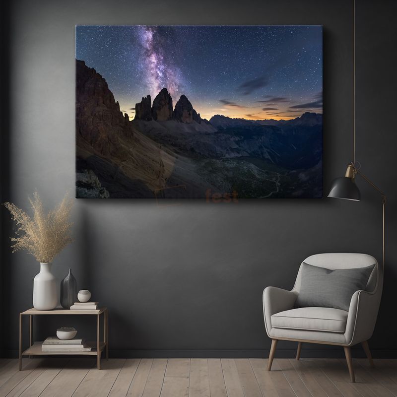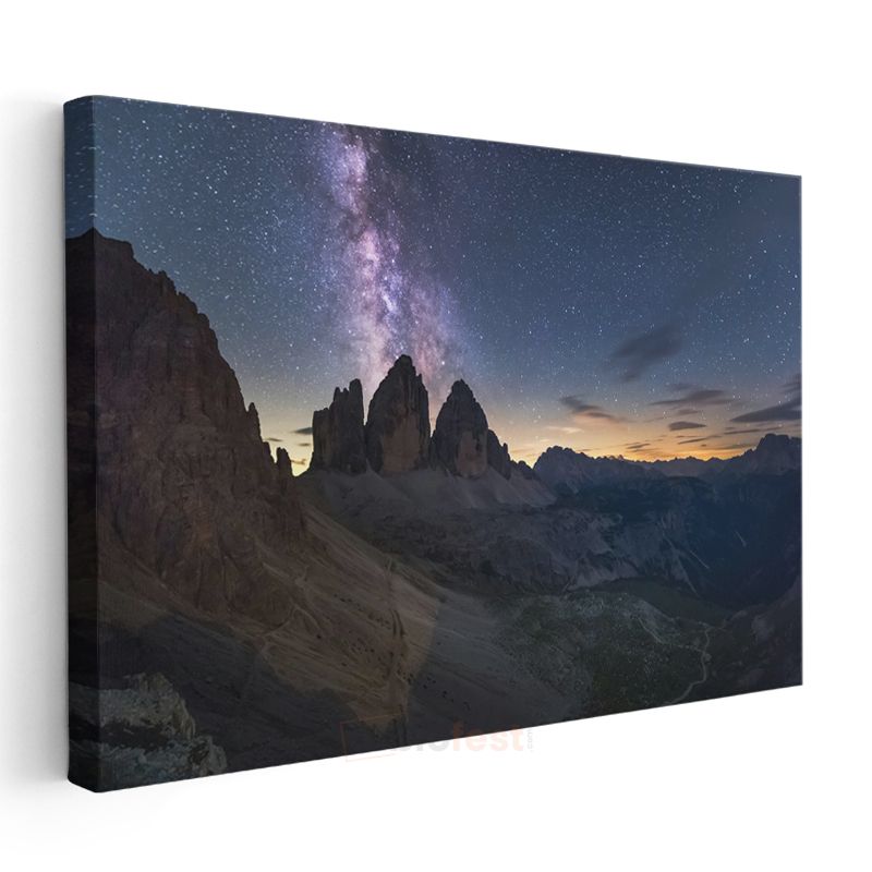 Samanyolu İhtişamı - Dağ Silüetleri Üzerinde Yıldızlı Gece Kanvas Tablo