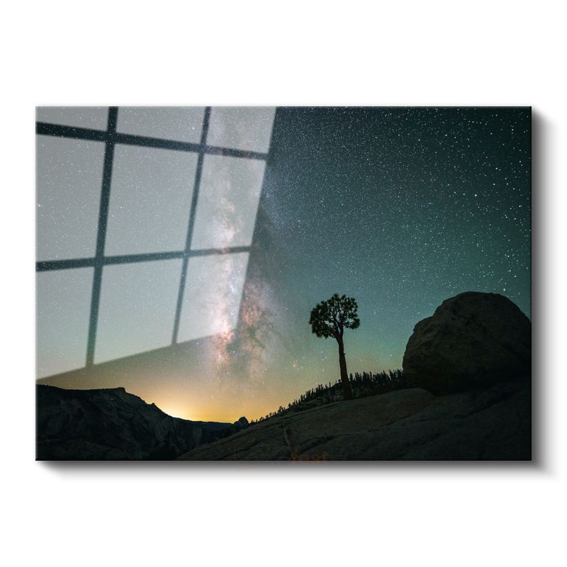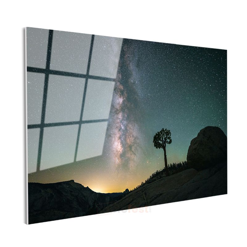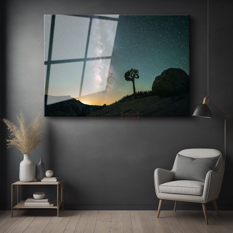 Samanyolu İhtişamı - Yalnız Ağaç ve Yıldızlı Gökyüzü Cam Tablo