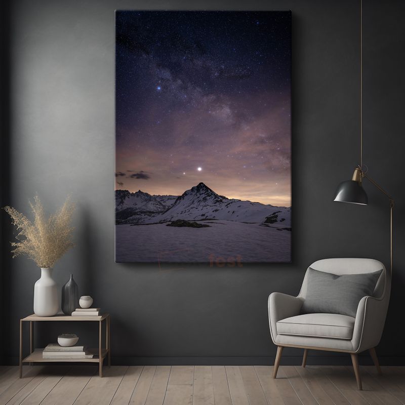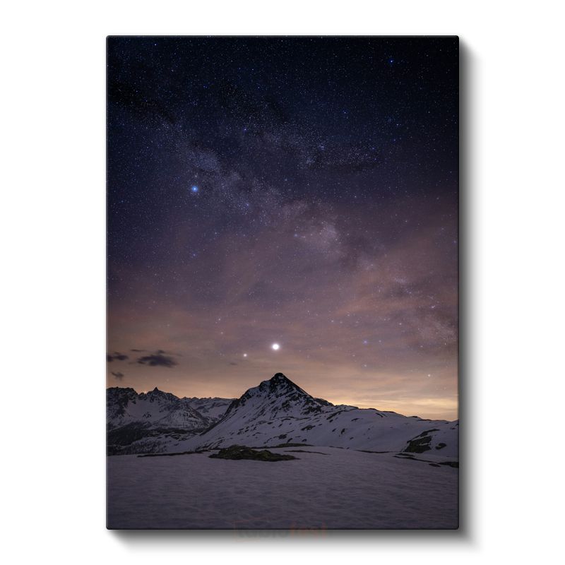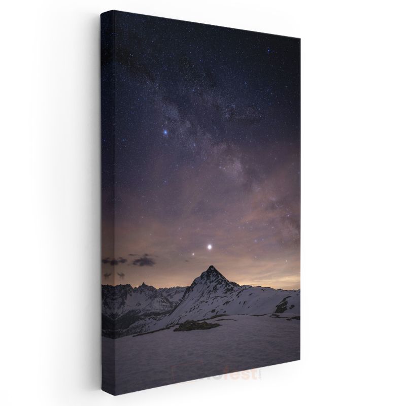 Samanyolu - Karlı Dağlar Üzerinde Yıldızlı Gece Kanvas Tablo