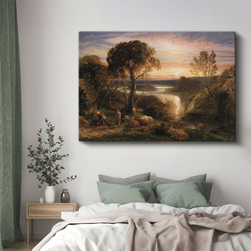 Samuel Palmer - Gün Batımında Pastoral Manzara Kanvas Tablo