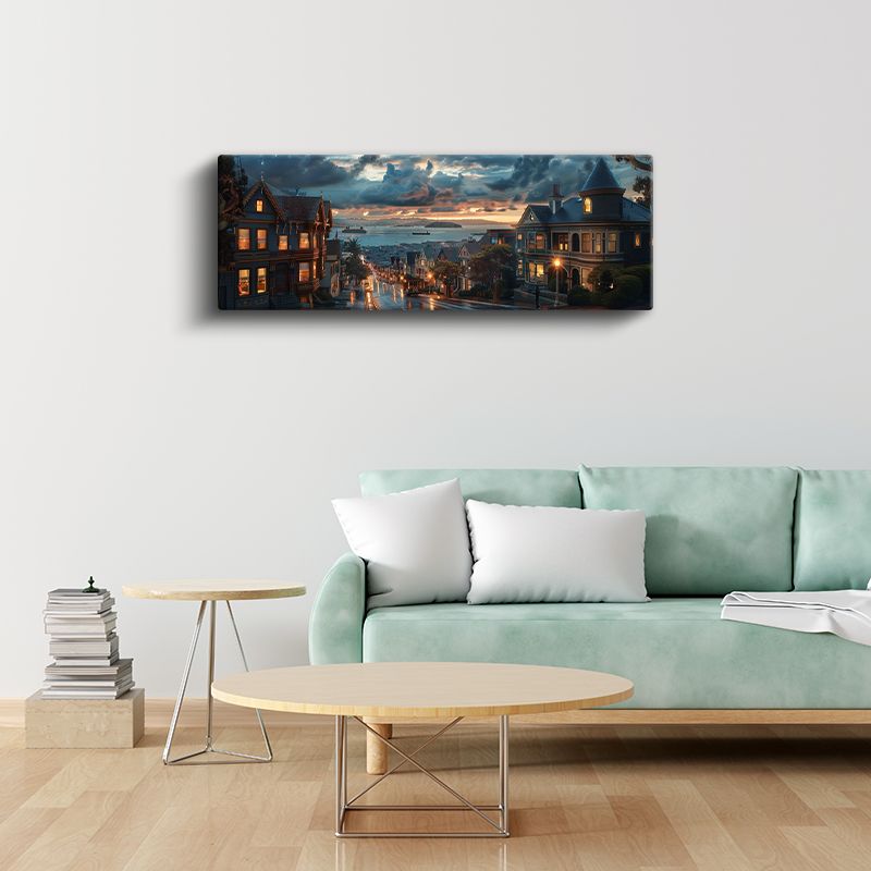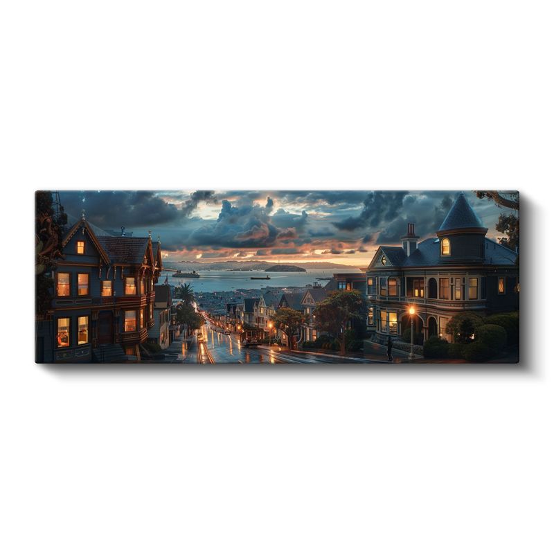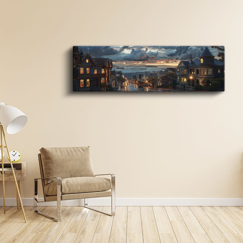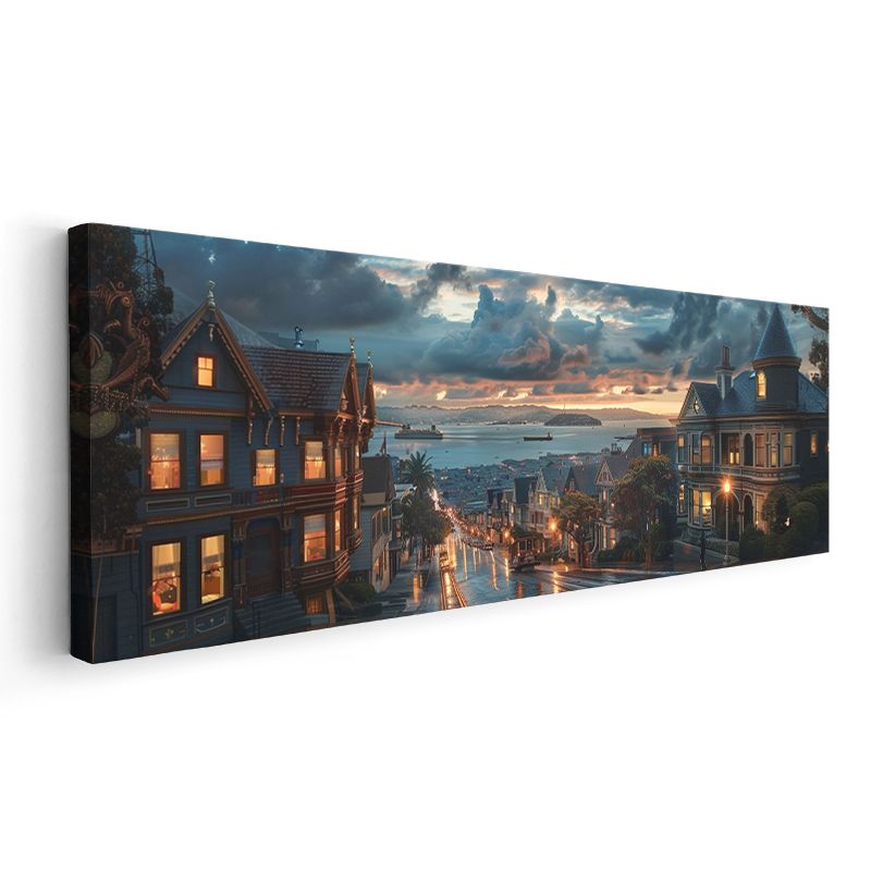 San Francisco Tepeleri - Işıklı Viktoryen Evler Kanvas Tablo