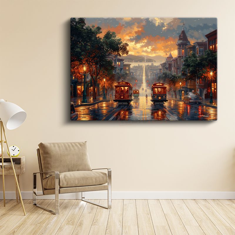 San Francisco Tramvayları - Işıklı Cadde Manzarası Kanvas Tablo