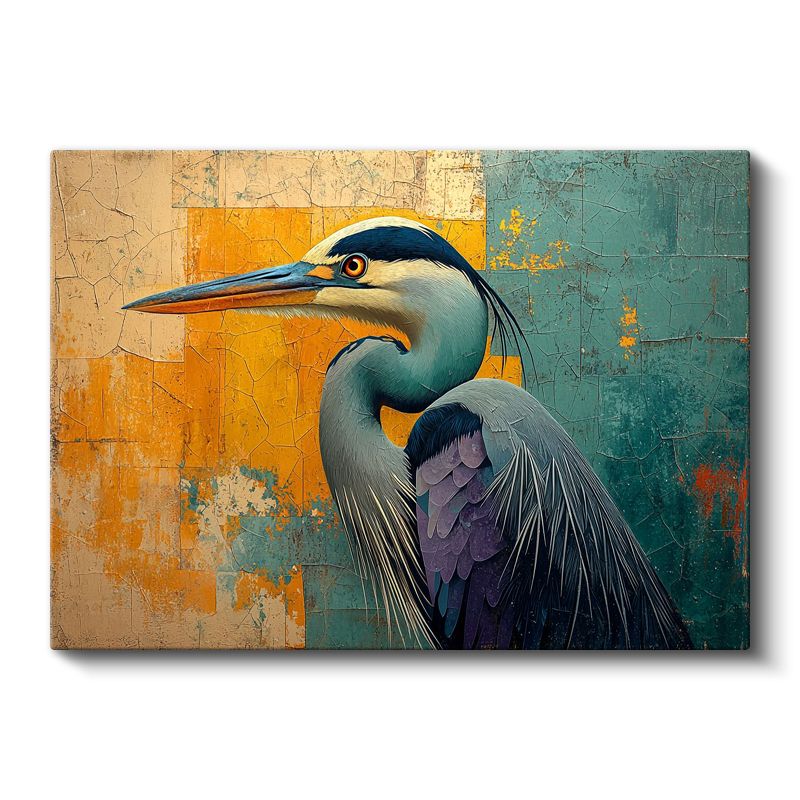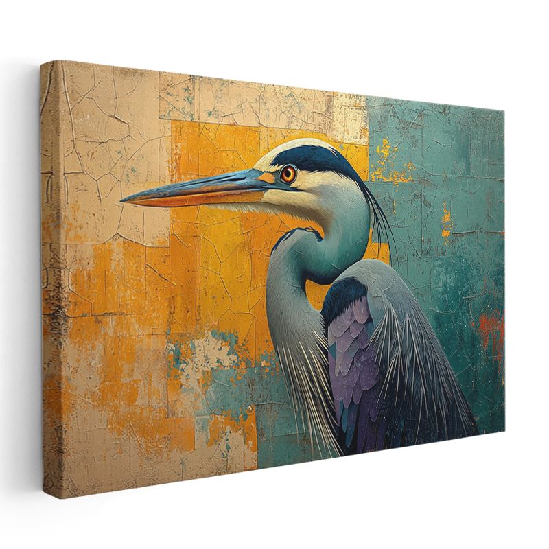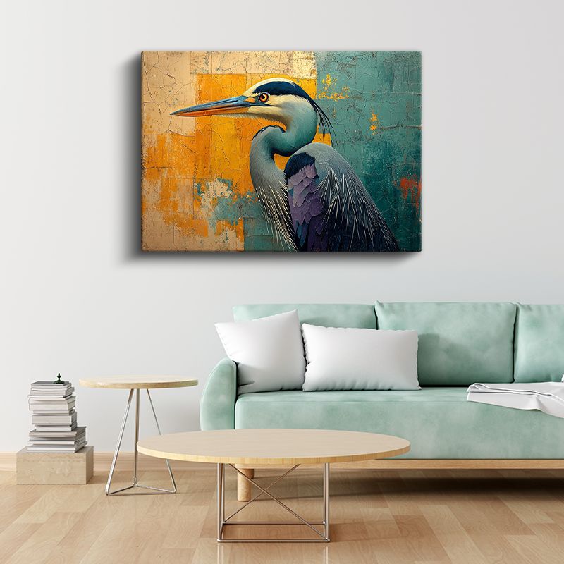 Sanatsal Balıkçıl - Kontrast Renkli Kuş Portresi Kanvas Tablo