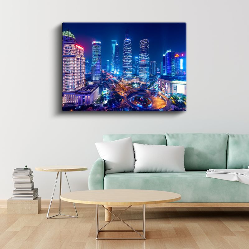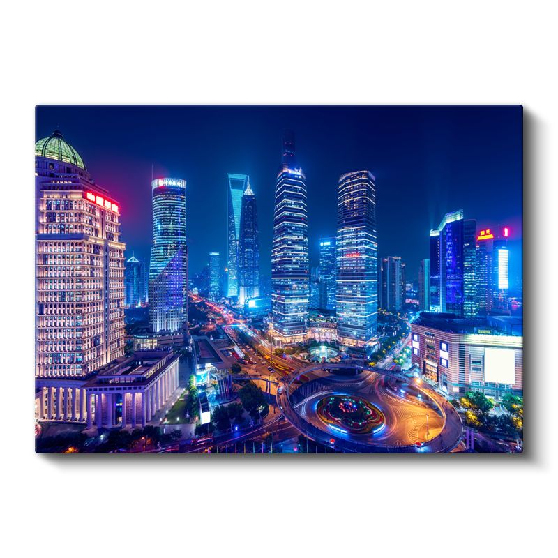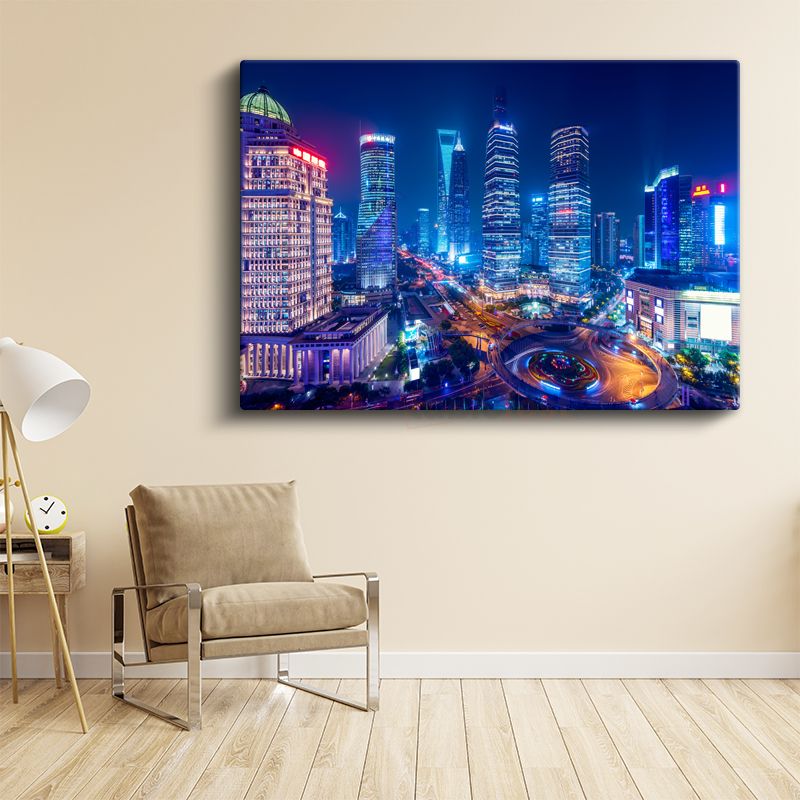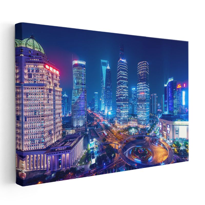 Şanghay Merkezi - Renkli Gökdelenler Kanvas Tablo