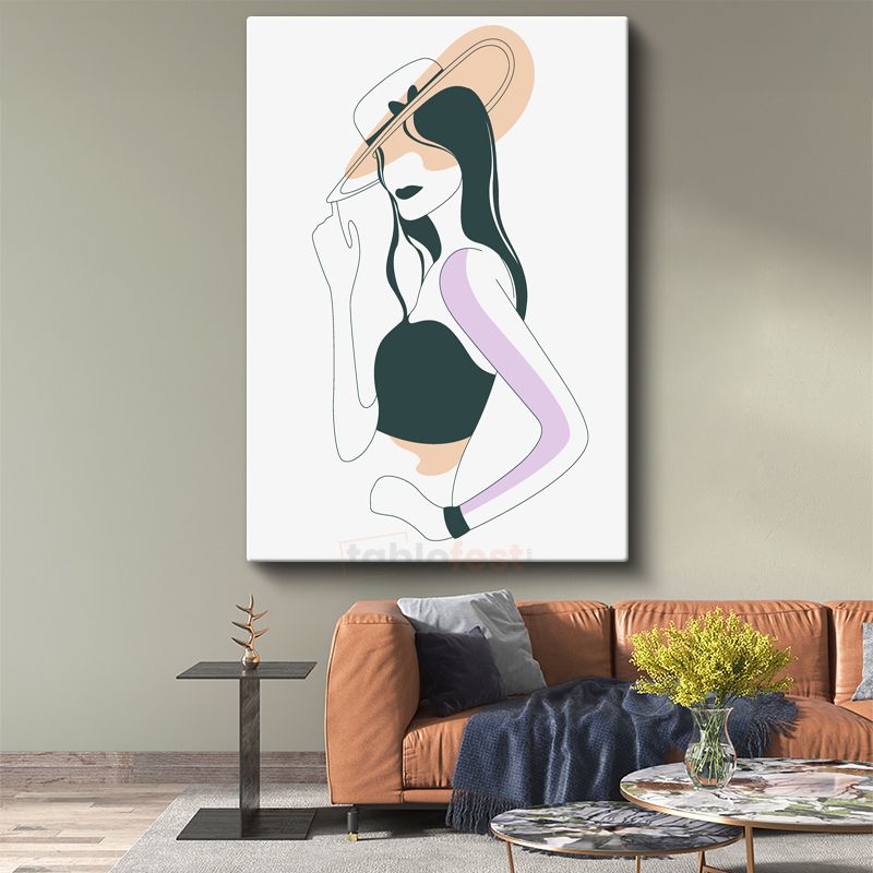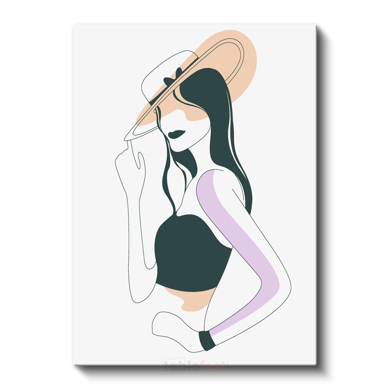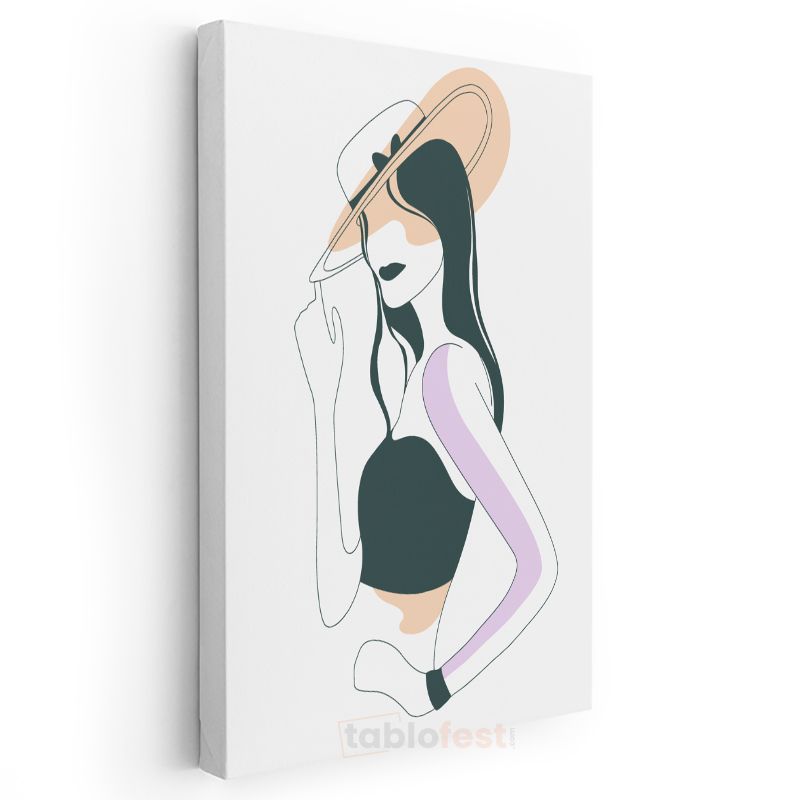 Şapkalı Silüet - Lila Bej Tonlarında Minimalist Çizgi Portre Kanvas Tablo