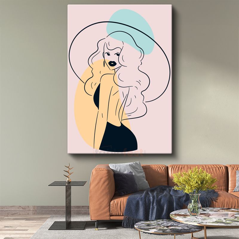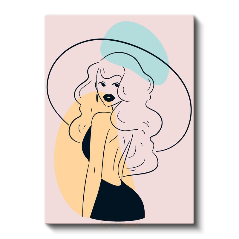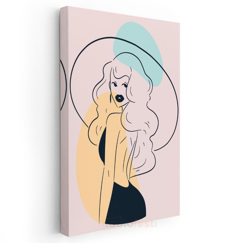 Şapkalı Siluet - Sarı Aksan Detaylı Minimalist Çizim Kanvas Tablo