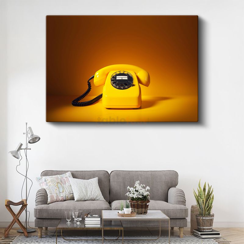 Sarı Çevirmeli Telefon - Amber Işıklı Retro İletişim Aracı Kanvas Tablo