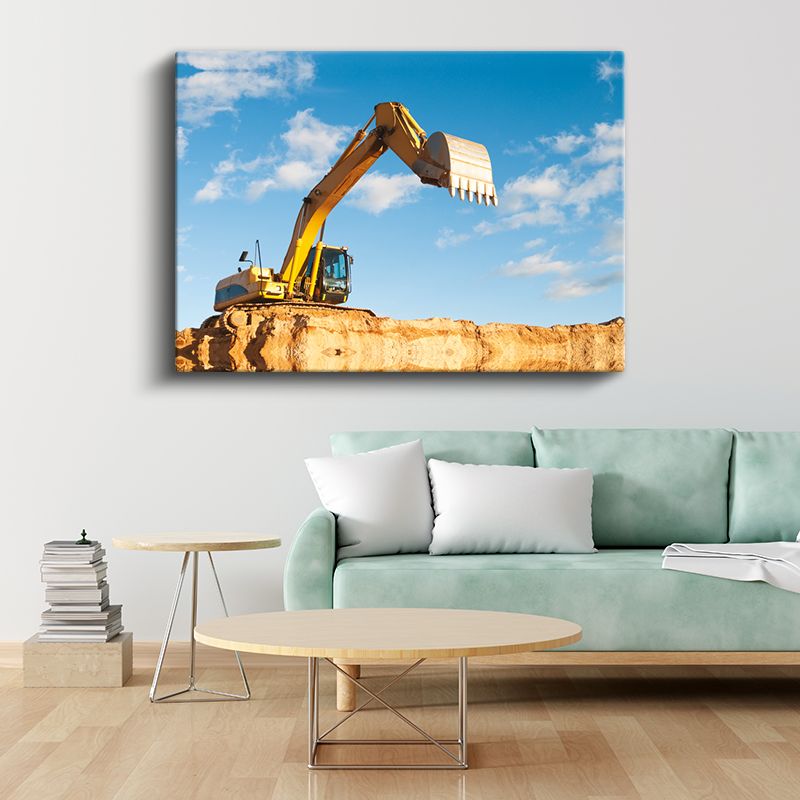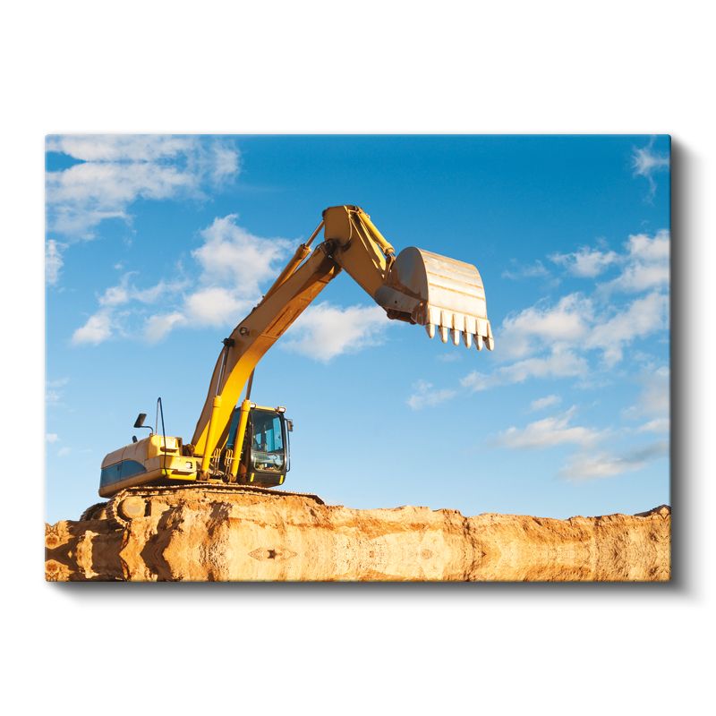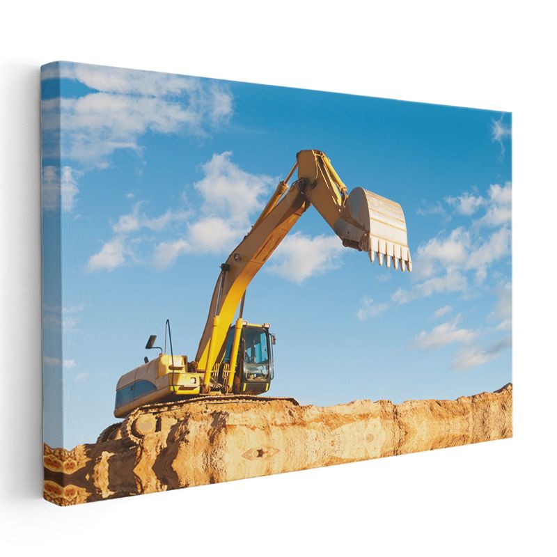 Sarı Ekskavatör - Toprak Zeminde İş Gücü Kanvas Tablo