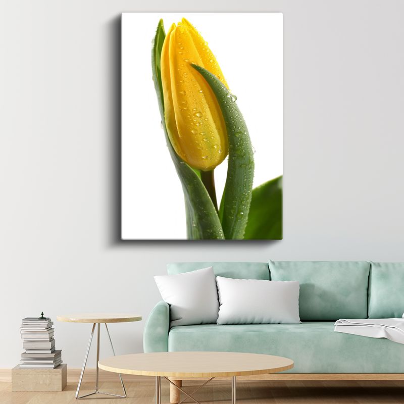 Sarı Lale - Çiy Damlalı Minimalist Çiçek Portresi Kanvas Tablo