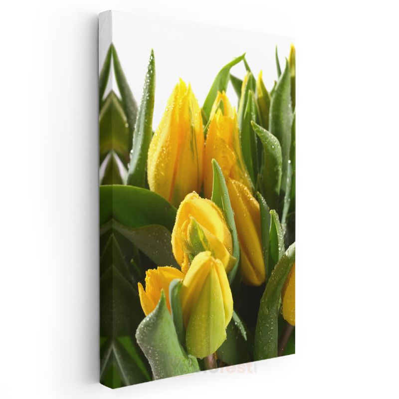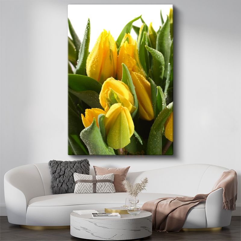 Sarı Laleler - Çiy Damlalı Bahar Çiçekleri Kanvas Tablo