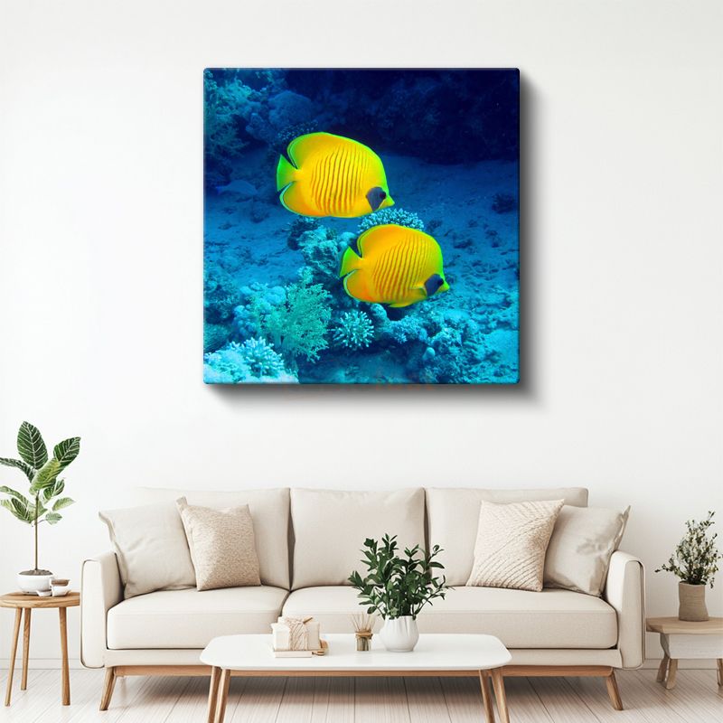 Sarı Mercan Balıkları - Mavi Derinliklerin İkili Dansı Kanvas Tablo