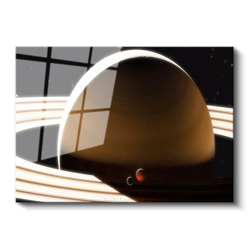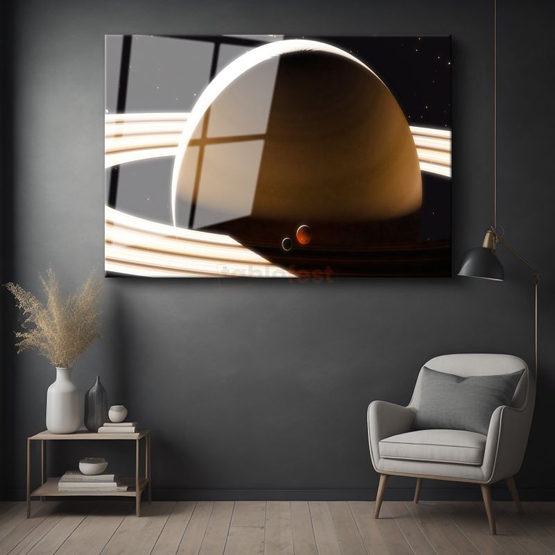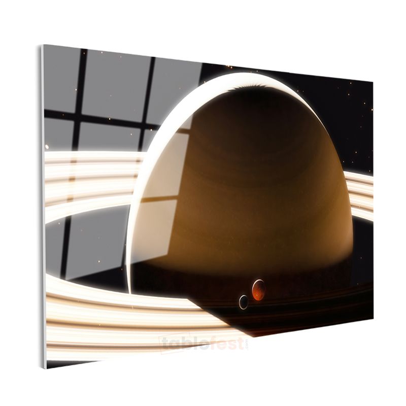 Satürn Gezegeni - Muhteşem Halkaları ve Uyduları ile Uzay Manzarası Cam Tablo