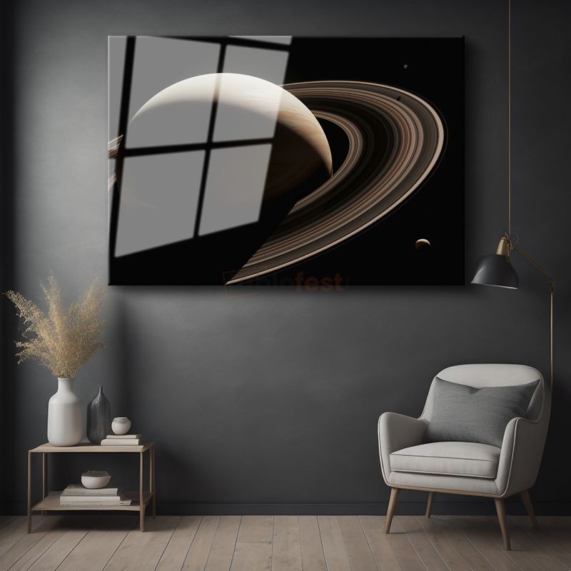 Satürn - Görkemli Halkaları ile Gaz Devi Cam Tablo