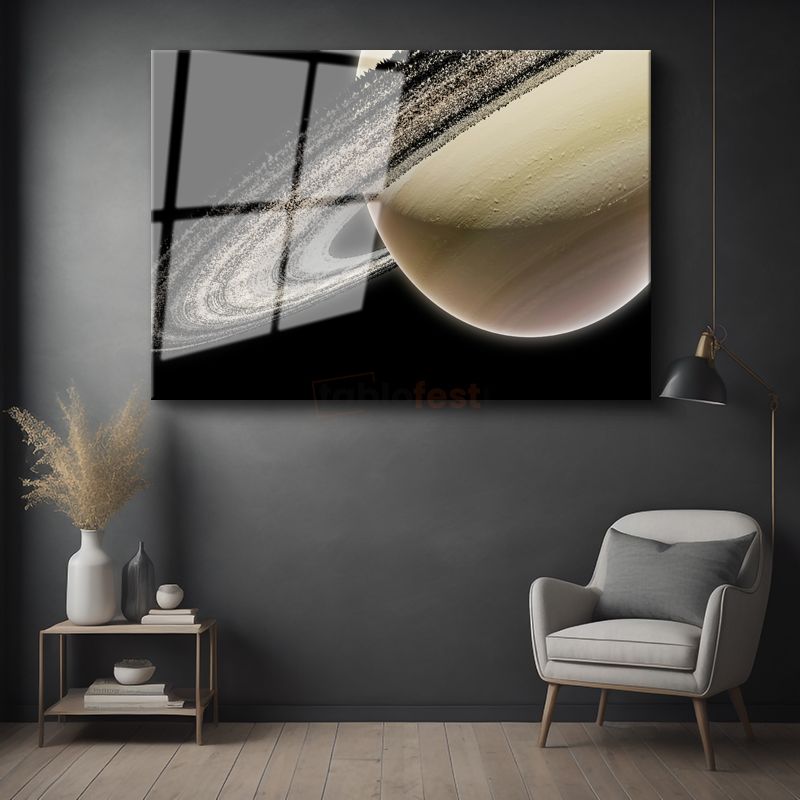 Satürn - İhtişamlı Halkaları ile Güneş Sisteminin Mücevheri Cam Tablo