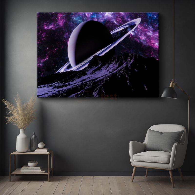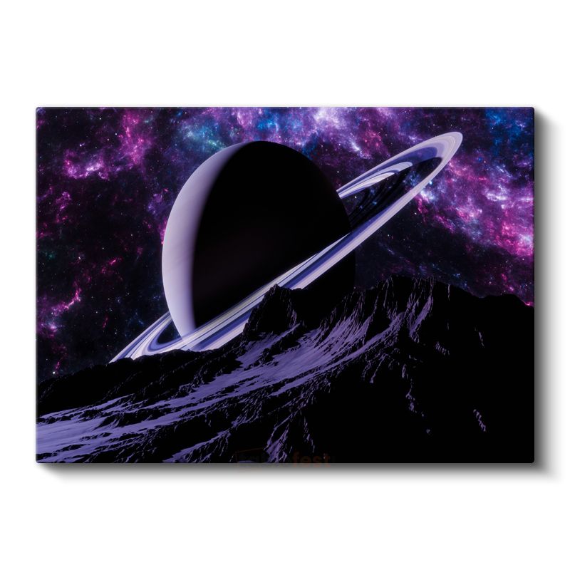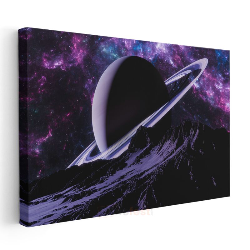 Satürn Manzarası - Mor Gökyüzünde Halkalı Gezegen Kanvas Tablo