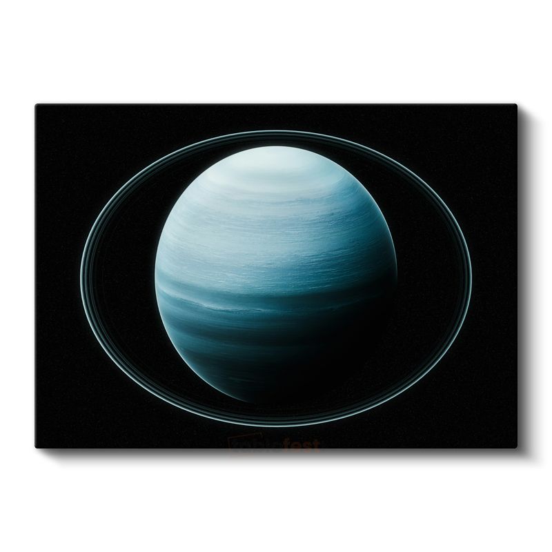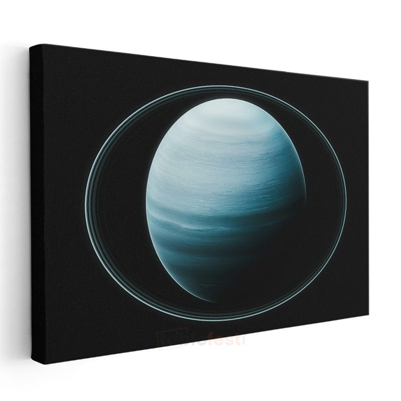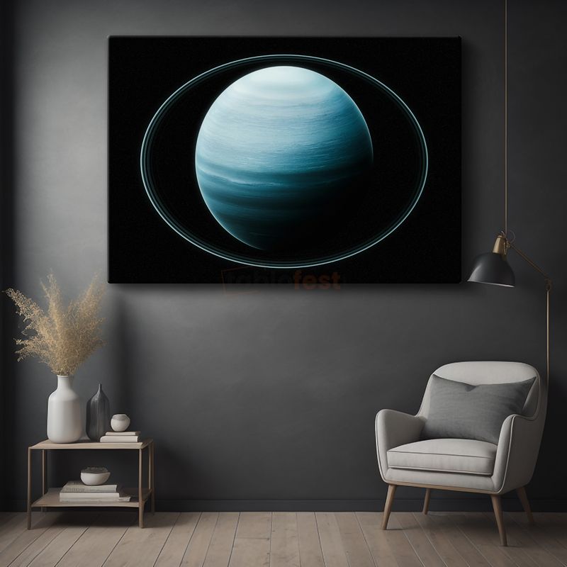 Satürn - Mavi Tonlarda Halkalı Gezegen Kanvas Tablo
