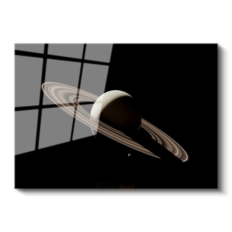 Satürn'ün İhtişamı - Halkalı Gezegenin Karanlık Uzaydaki Portresi Cam Tablo