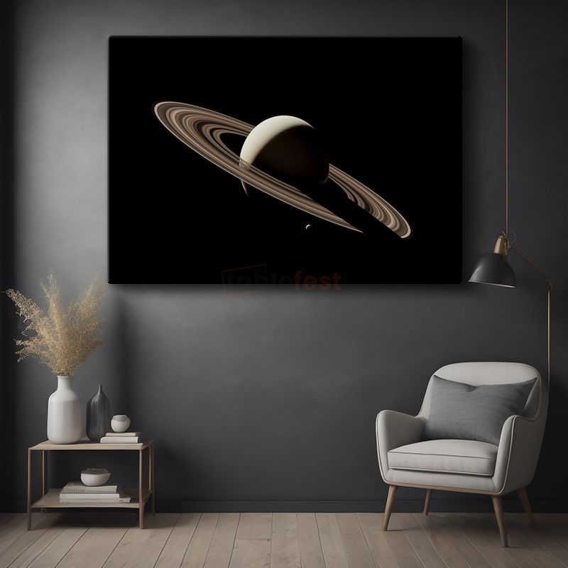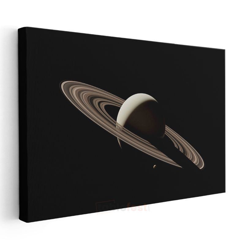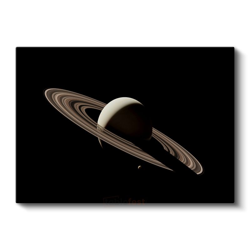 Satürn'ün İhtişamı - Halkalı Gezegenin Karanlık Uzaydaki Portresi Kanvas Tablo