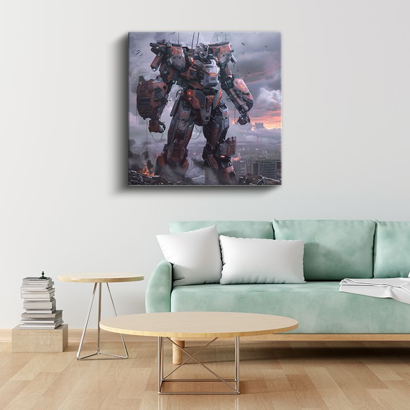 Savaş Robotu - Gün Batımı Savaş Alanı Anime Kanvas Tablo