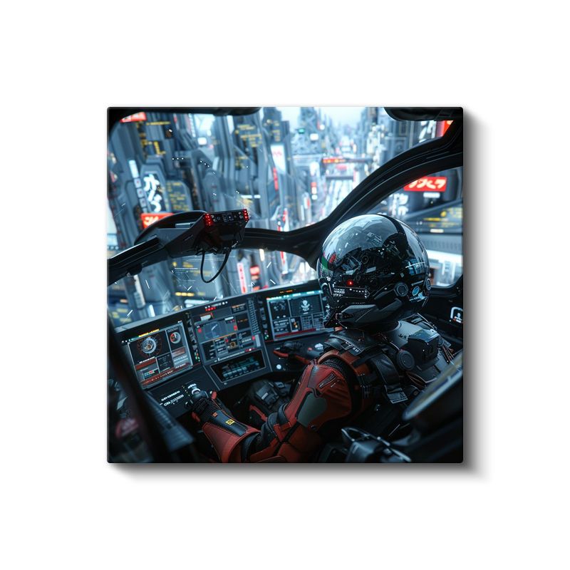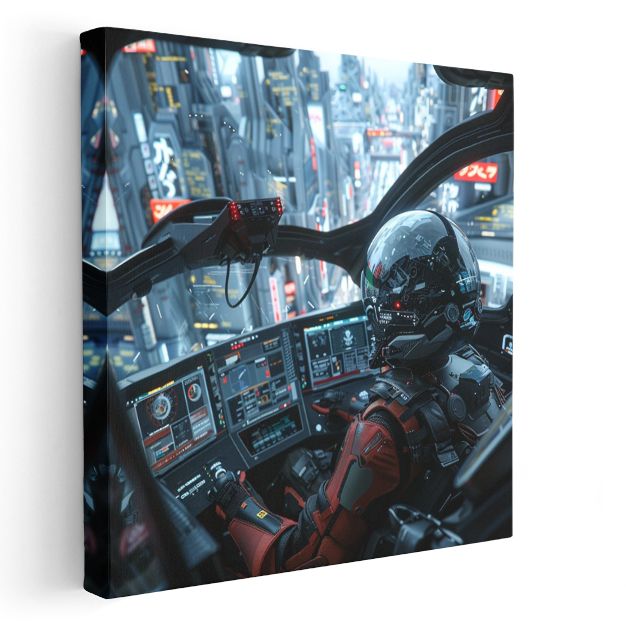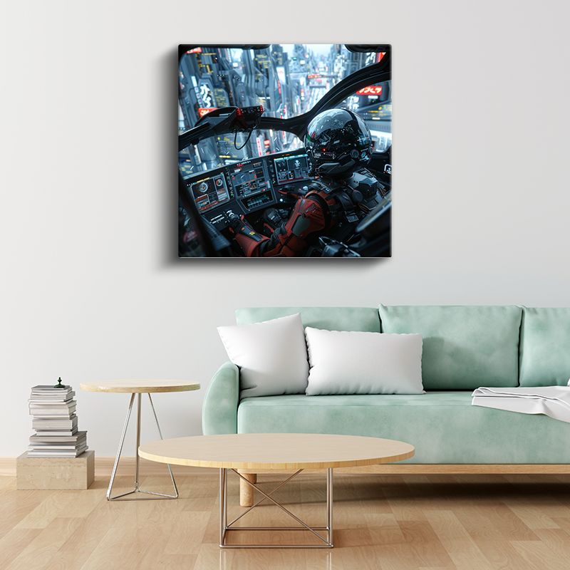 Sci-Fi Pilot - Gökdelen Manzarası Anime Kanvas Tablo