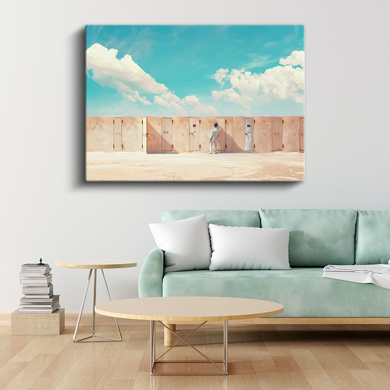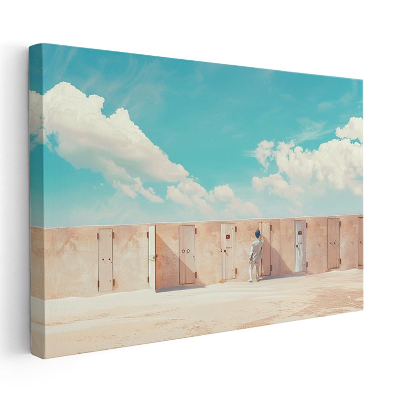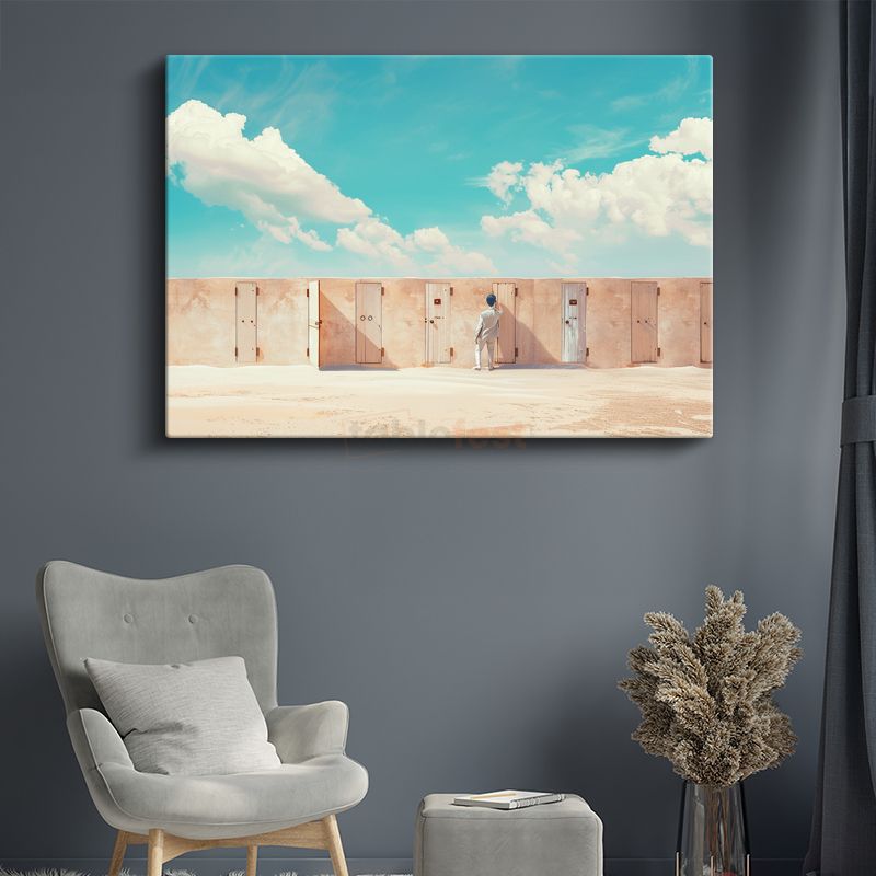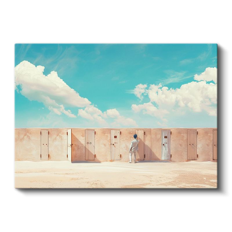 Seçim Labirenti - Çölde Sıralanan Gizemli Kapılar Kanvas Tablo