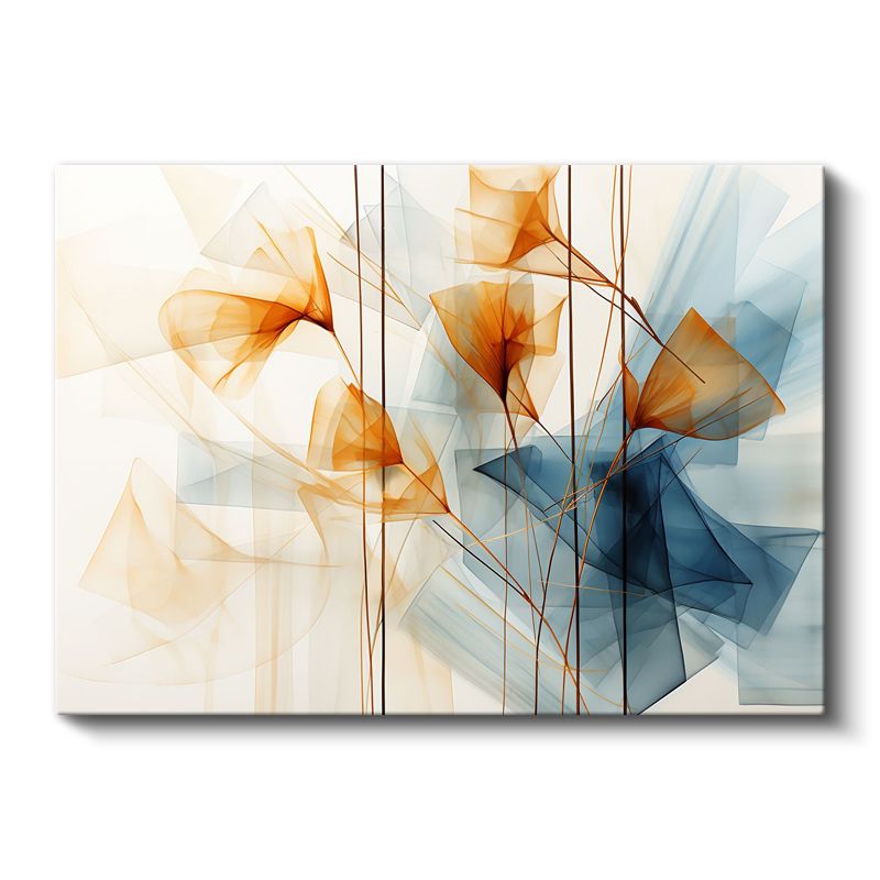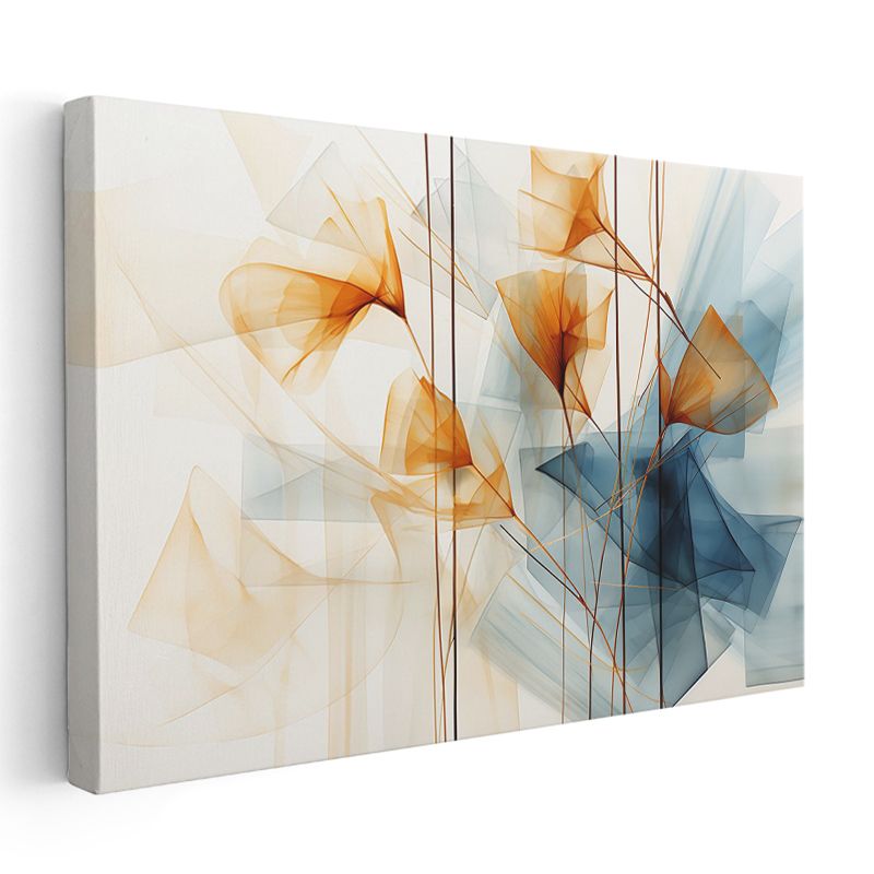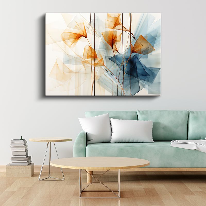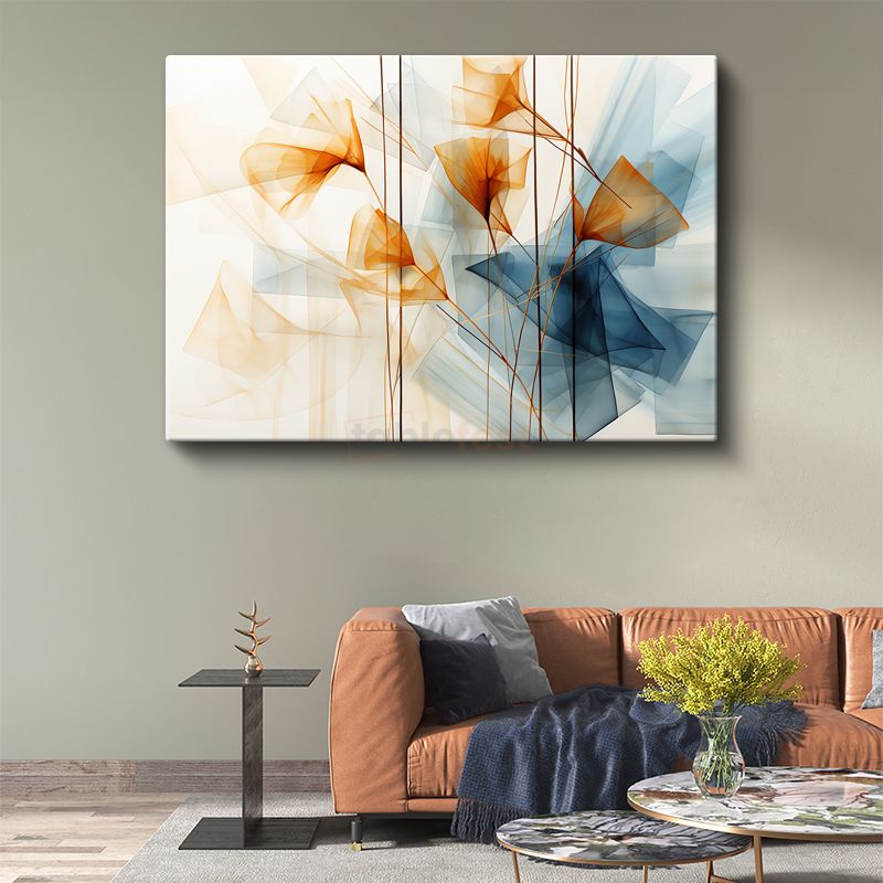 Şeffaf Harmoni - Turuncu Mavi Soyut Çiçek Desenleri Kanvas Tablo