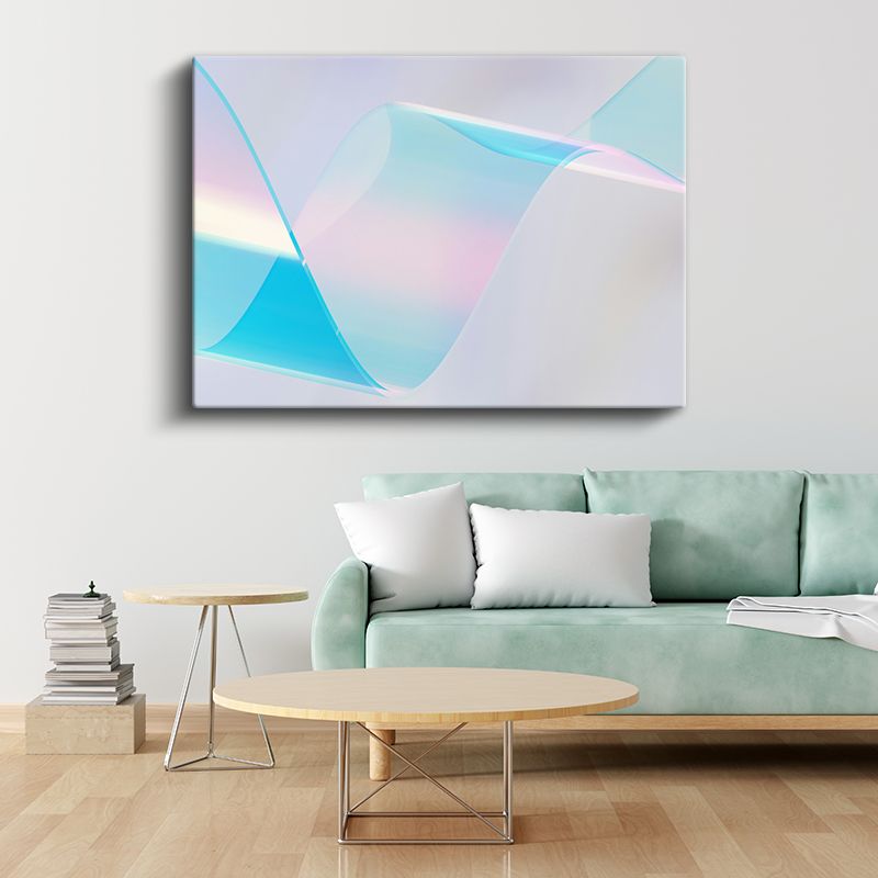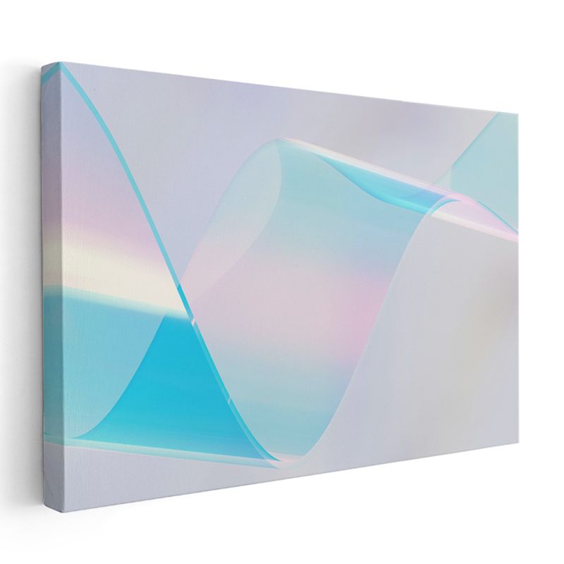 Şeffaf Katmanlar - Turkuaz Pembe Dalgalı Formlar Kanvas Tablo