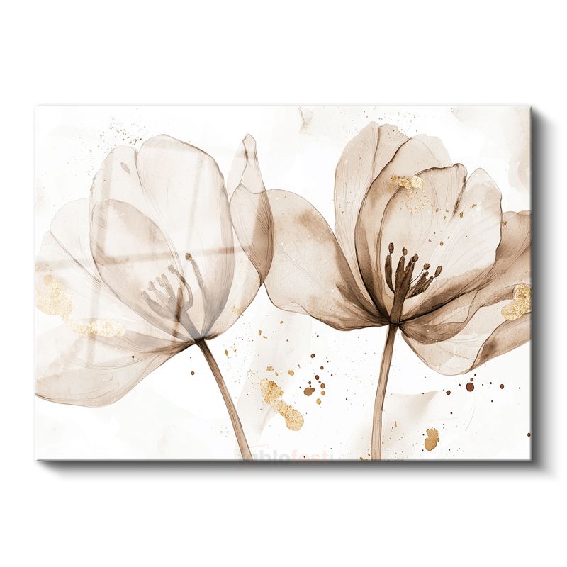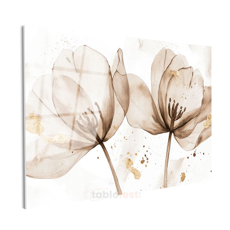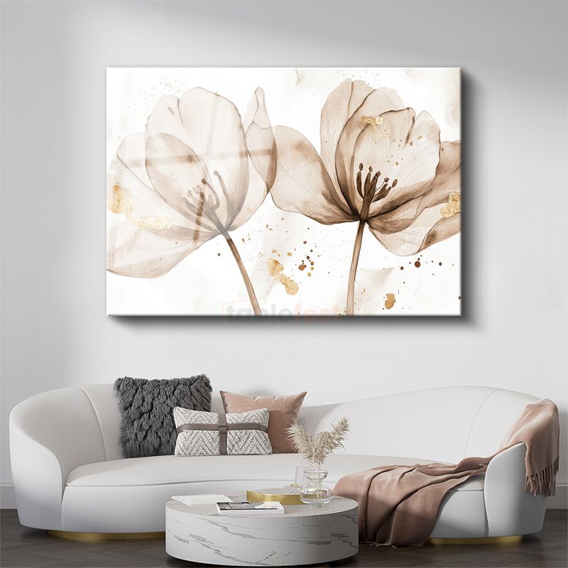 Şeffaf Laleler - Suluboya Teknikli Çiçek Cam Tablo