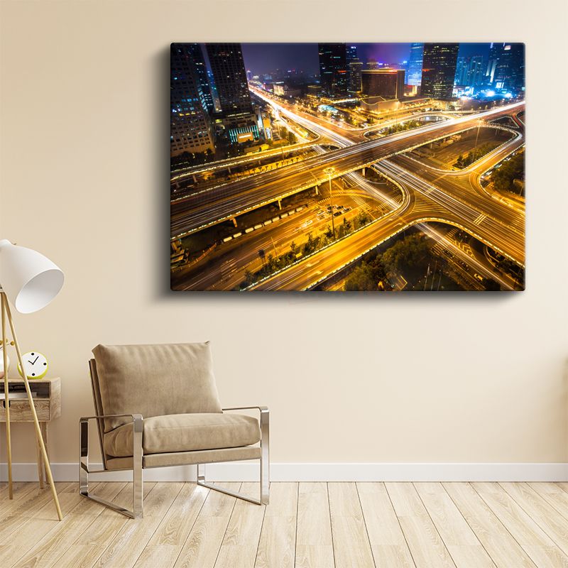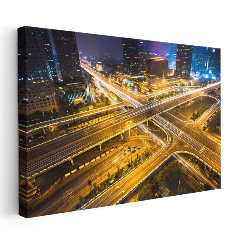 Şehir Kavşakları - Gece Işık İzleri Kanvas Tablo