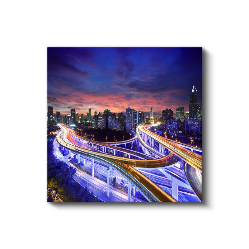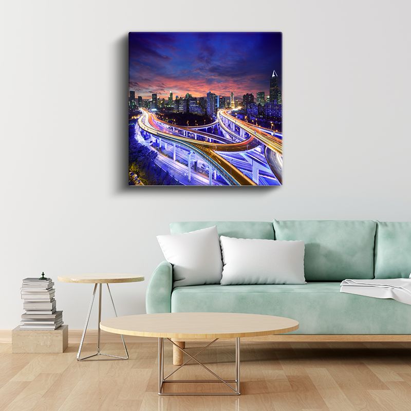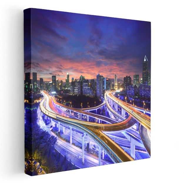 Şehir Kavşakları - Gece Işıklarında Otoyol Manzarası Kanvas Tablo