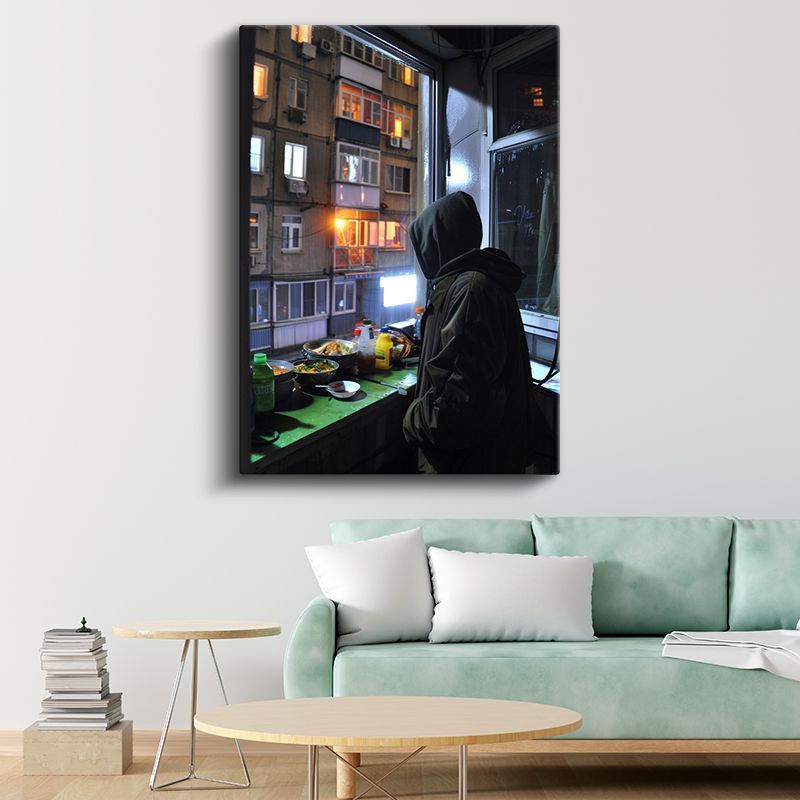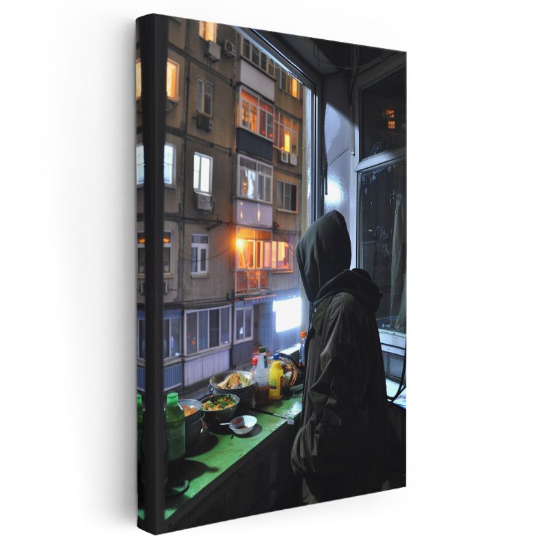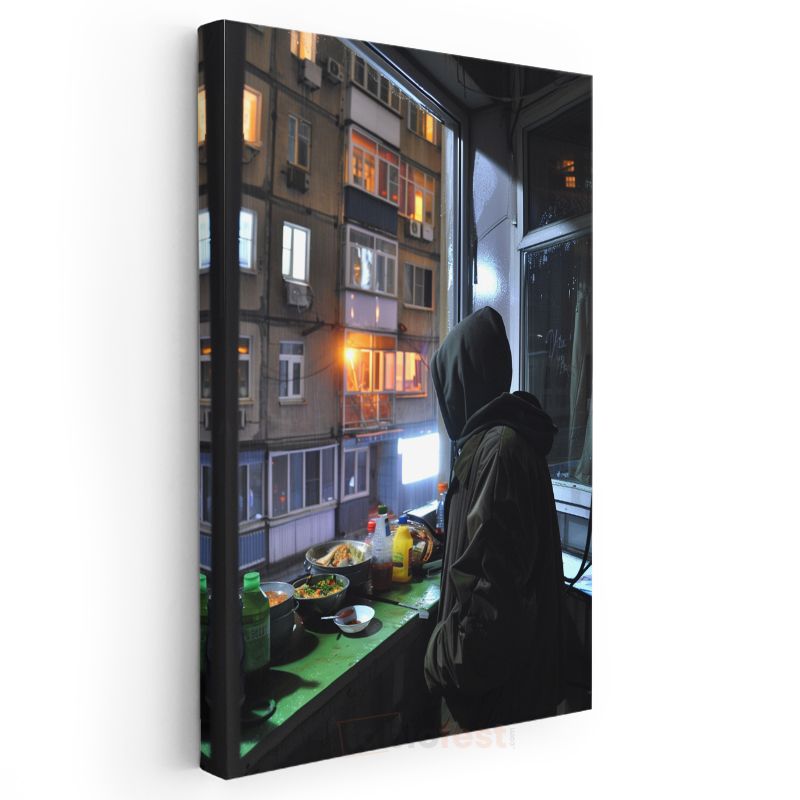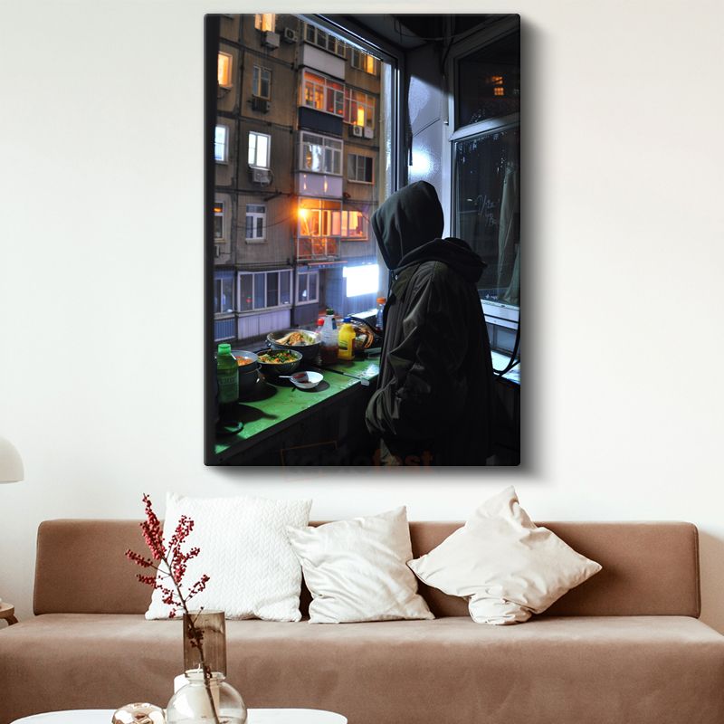 Şehir Manzarası - Gece Penceresi Anime Kanvas Tablo