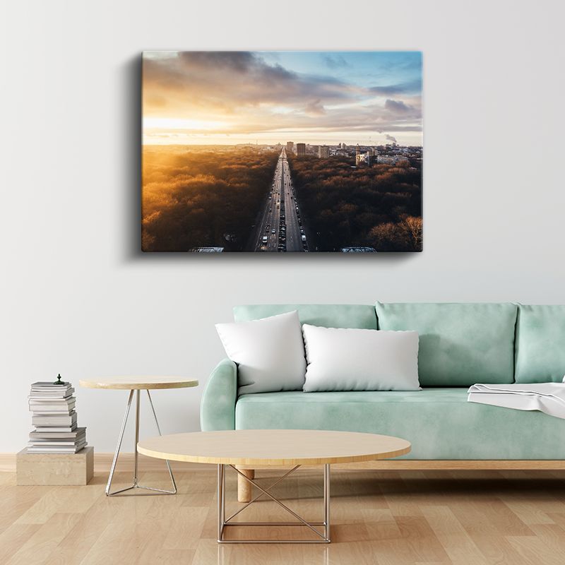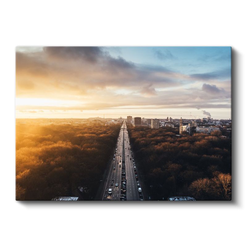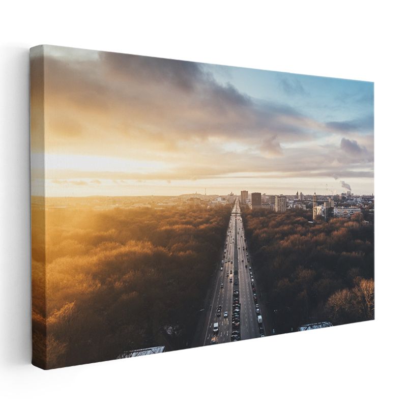Şehir Otoyolu - Altın Işıkta Ufuk Çizgisi Kanvas Tablo