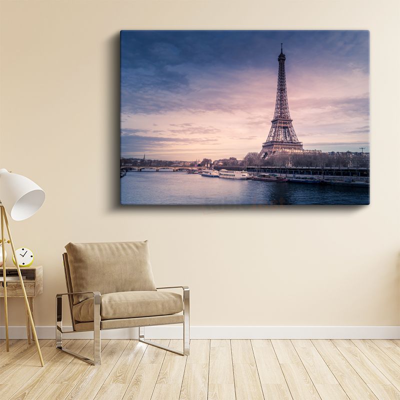 Seine Nehri Manzarası - Gün Batımında Eyfel Kulesi Kanvas Tablo