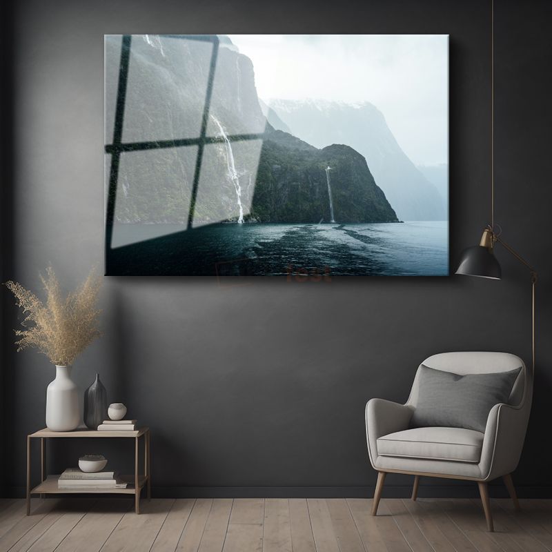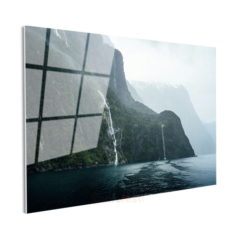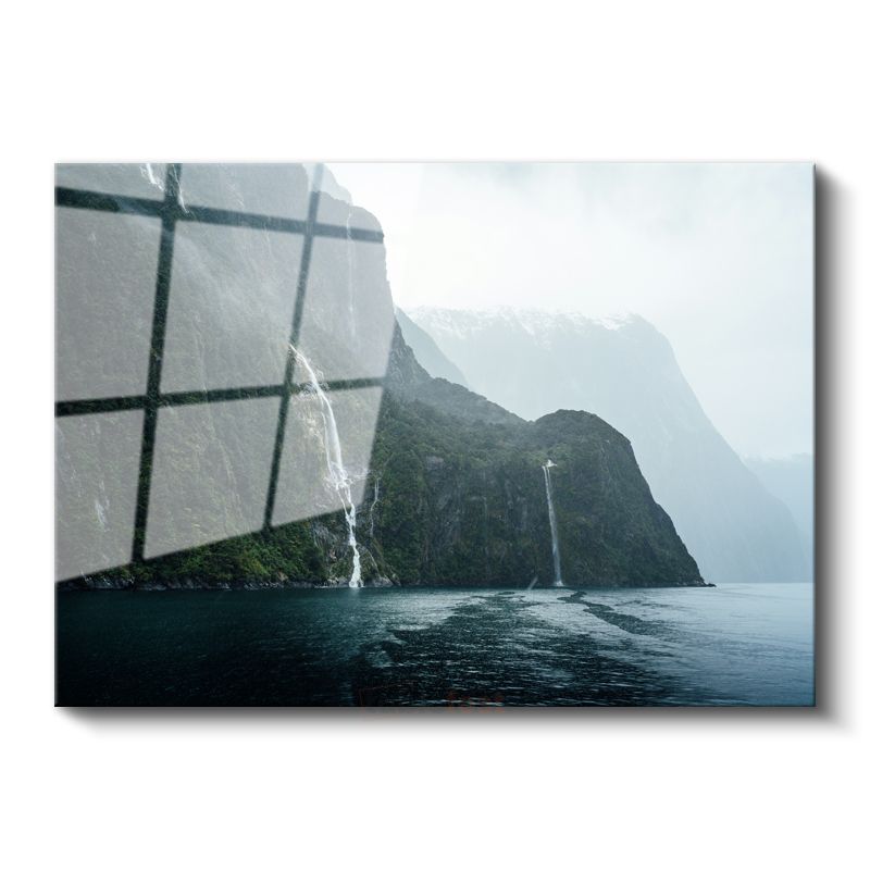 Şelaleler Vadisi - Sisli Dağlarda Akan Sular Cam Tablo