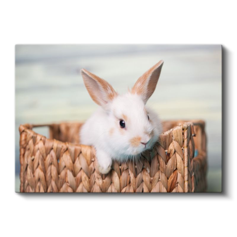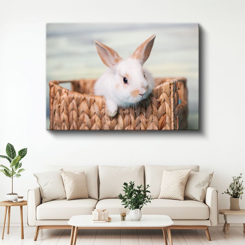 Sepet İçindeki Tavşan - Sevimli Beyaz Kemirgen Kanvas Tablo