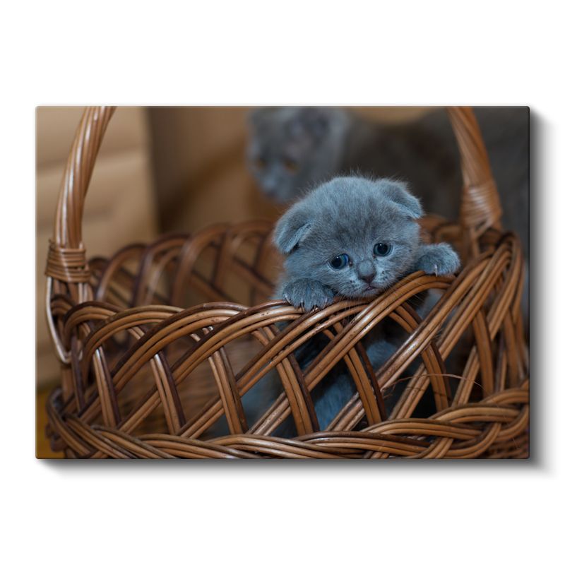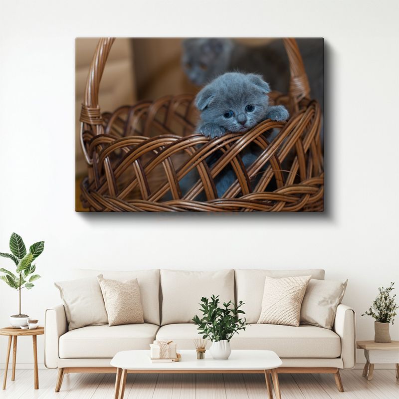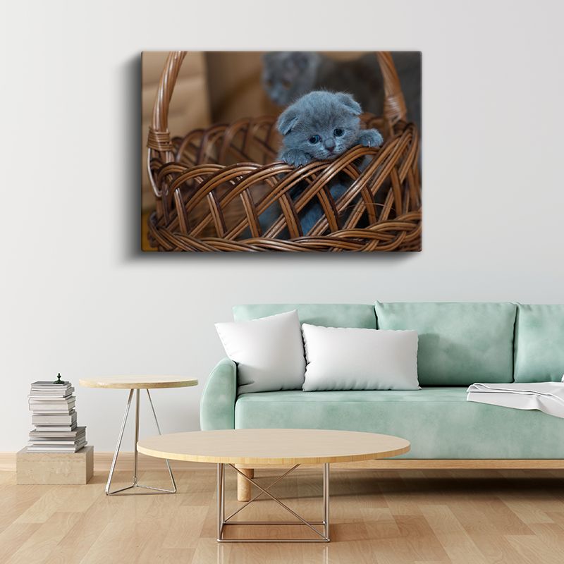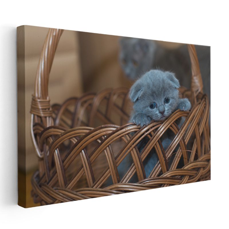 Sepetteki Yavru - Mavi Tüylü Minik Kedinin Masumiyeti Kanvas Tablo
