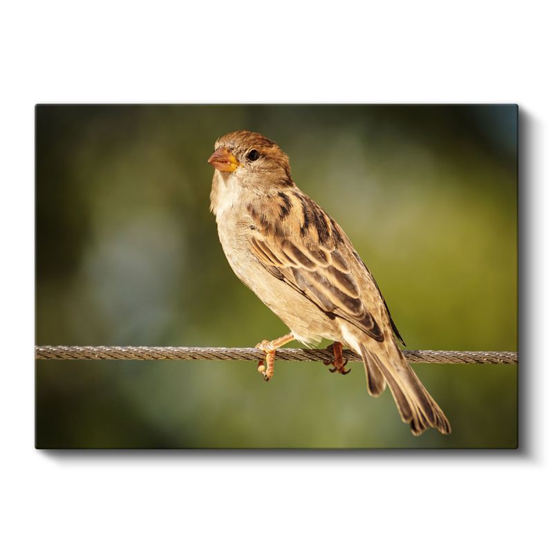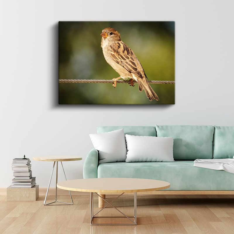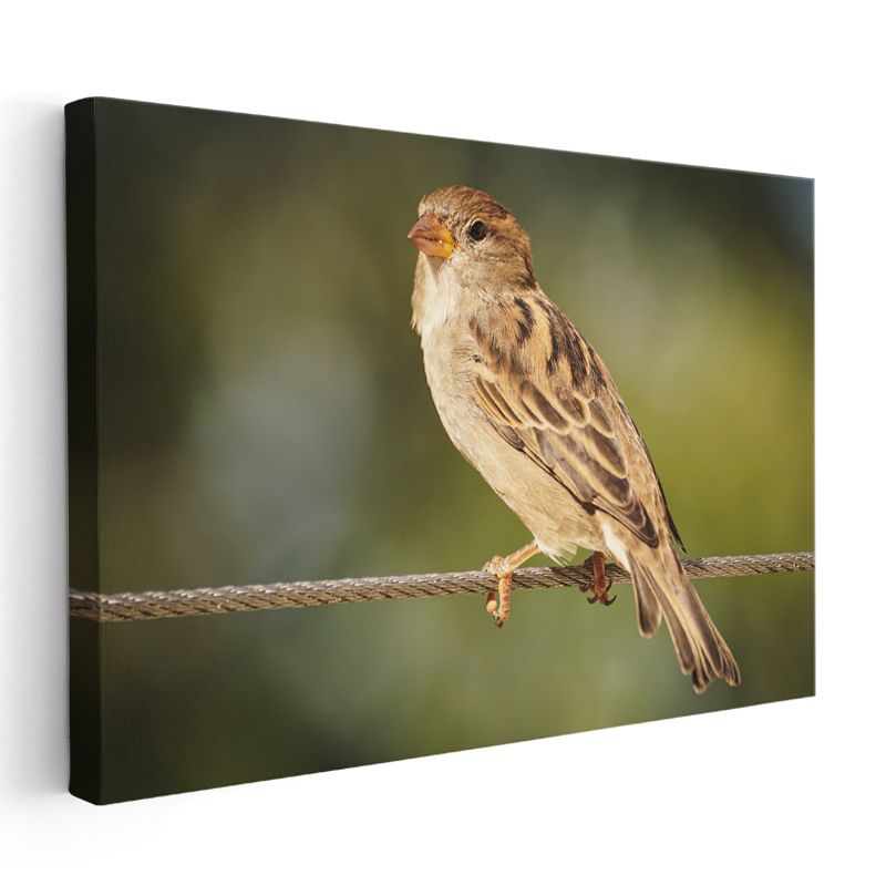 Serçe Duruşu - Tel Üzerinde Bekleyen Minik Kuş Kanvas Tablo